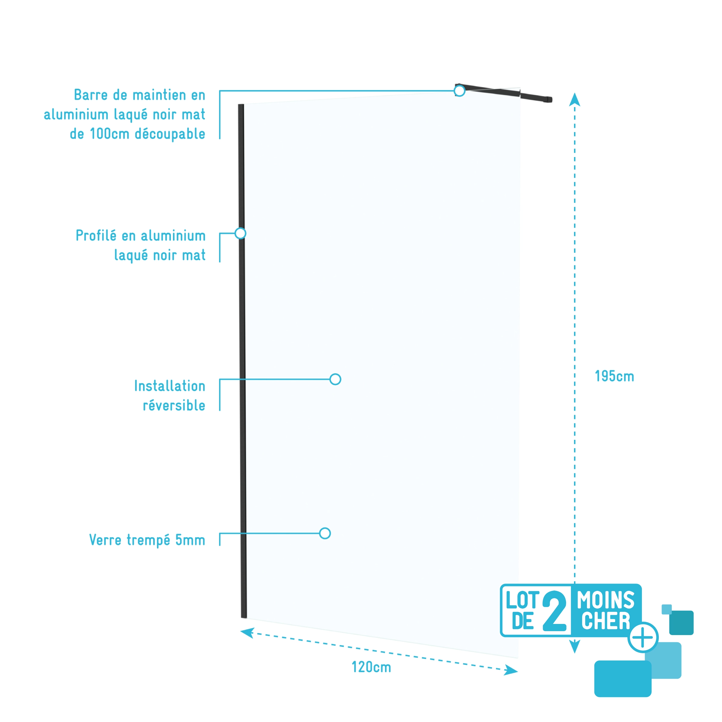 0 avis LEA Paroi de Douche 120x200cm - Verre Anticalcaire - Encadrement Ultra-Fin - Finition Noir Mat - LEA