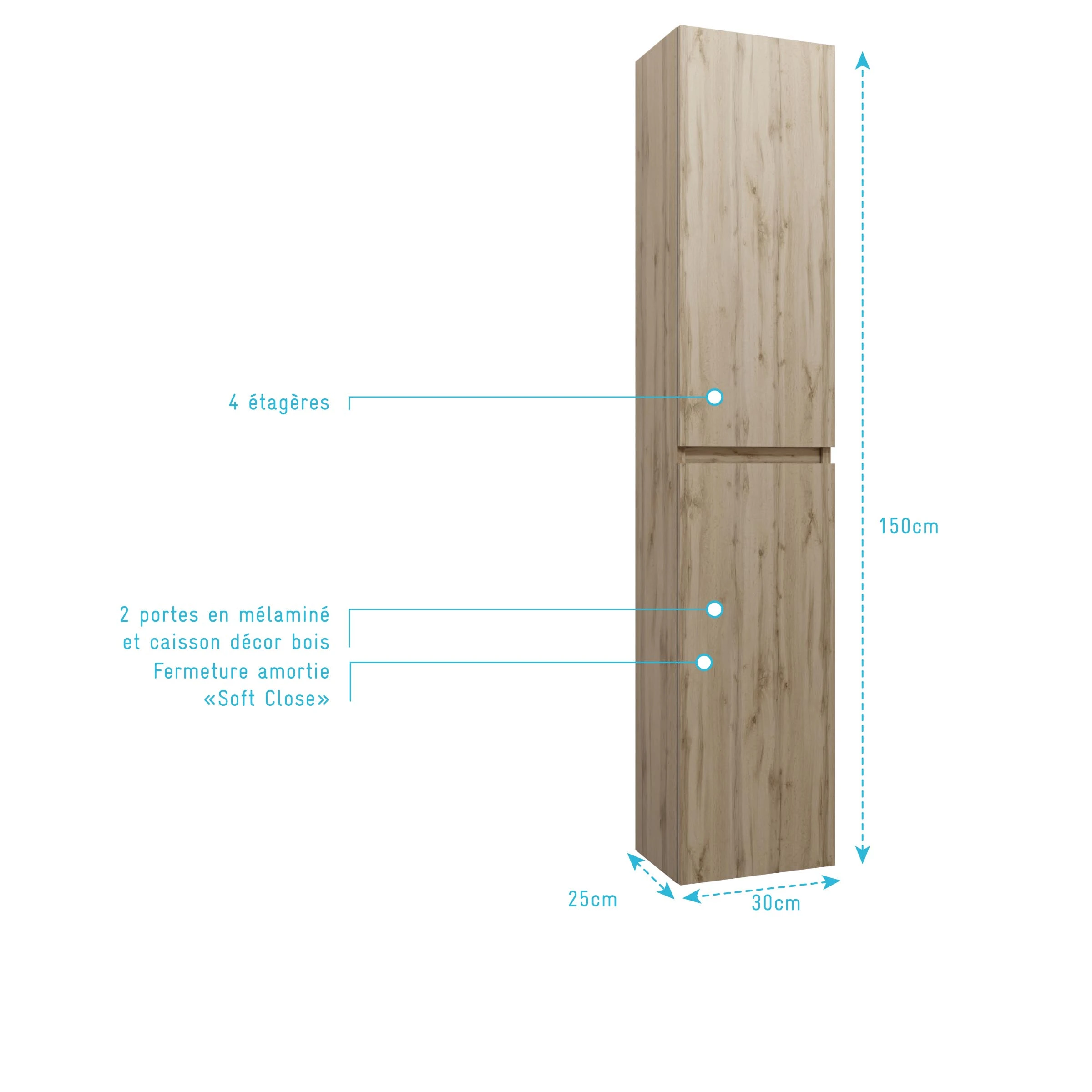 Meuble colonne – 30x150x25cm – Finition chene naturel – SWIFT