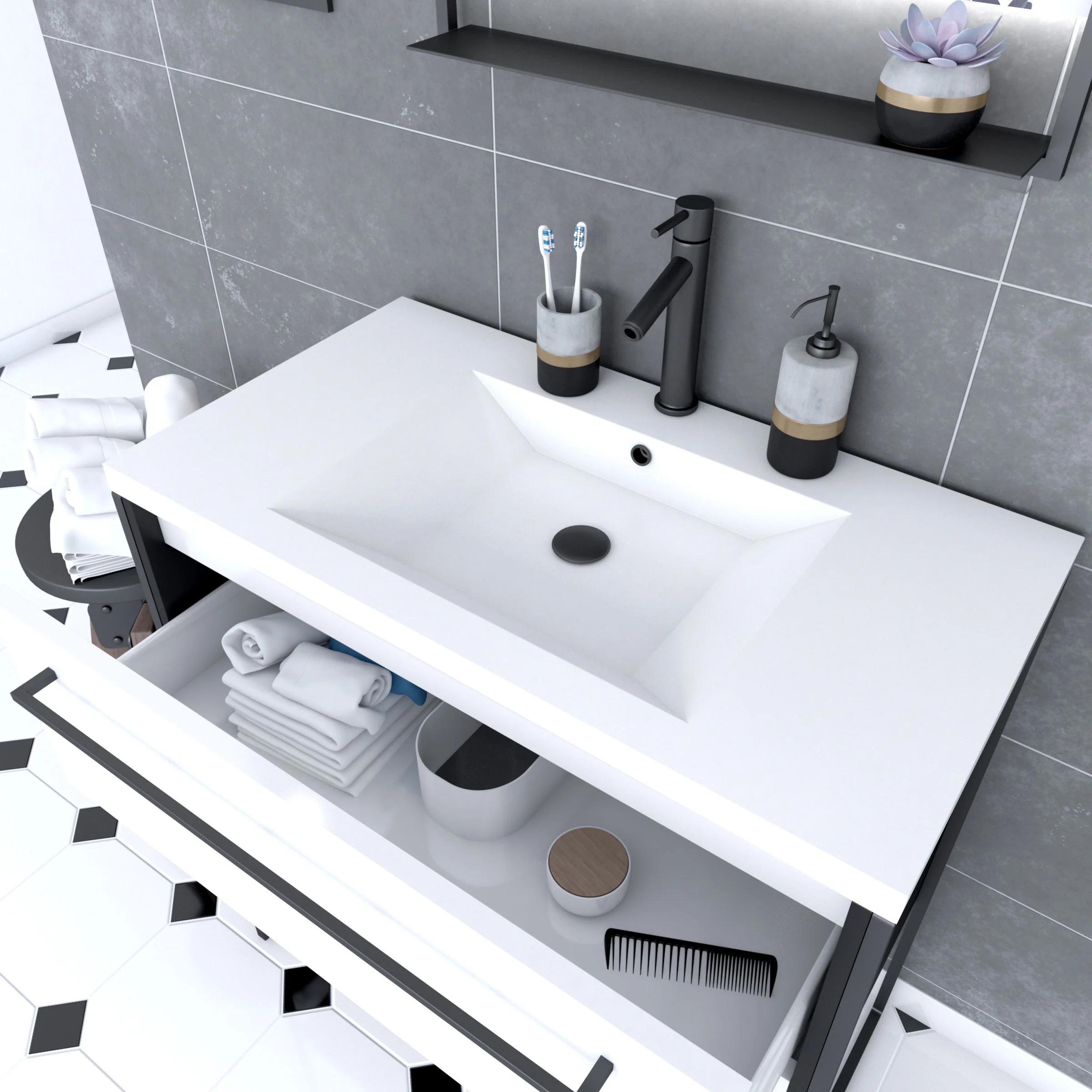 Meuble de salle de bain 80x50cm NOIR MAT – 2 tiroirs blanc – vasque blanche – STRUCTURA F034