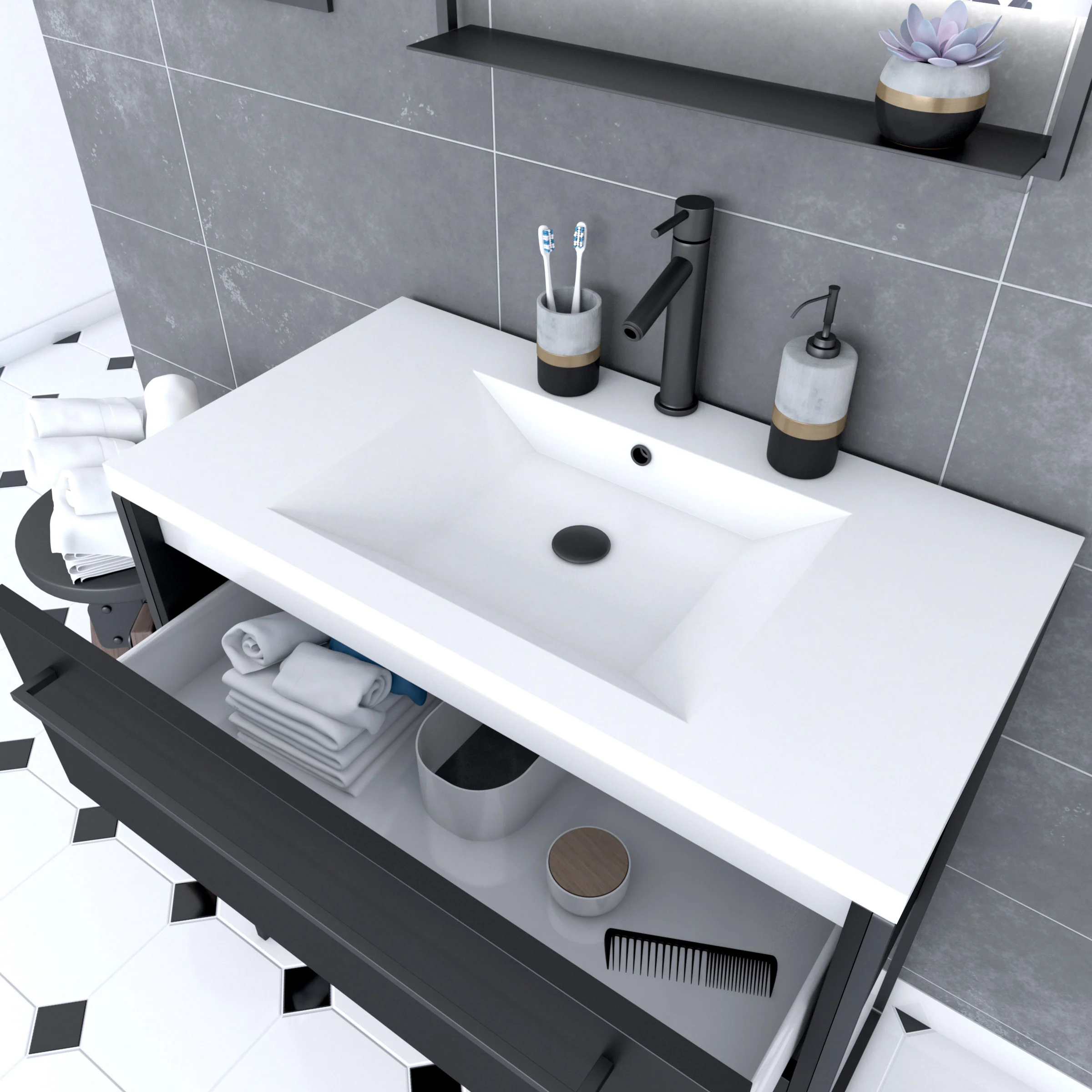 1 avis pour Meuble de salle de bain 80x50cm NOIR MAT – 2 tiroirs Noir mat – vasque blanche – STRUCTURA P054