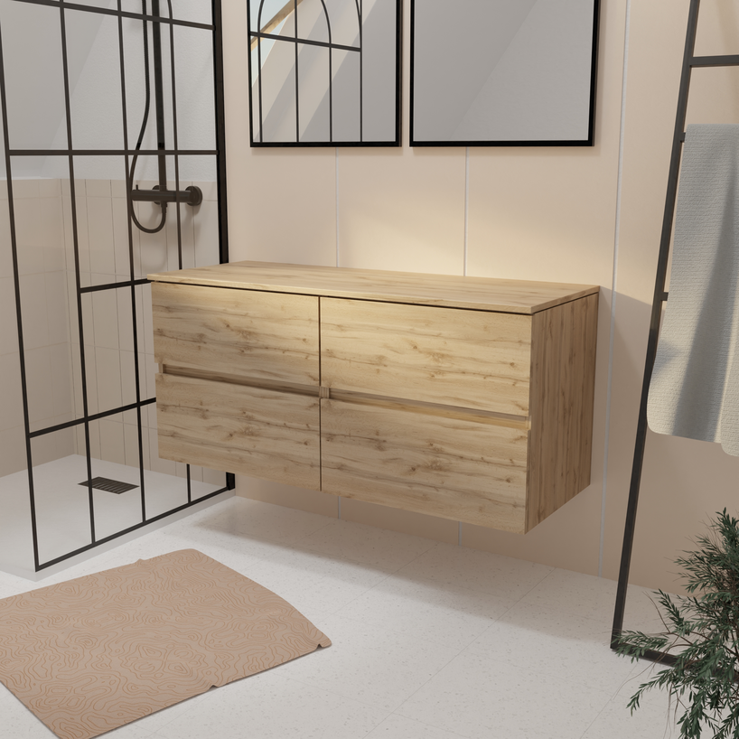 Meuble de Salle de Bains 120 cm à Tiroirs avec Plan Finition Chêne Naturel – TIMBER