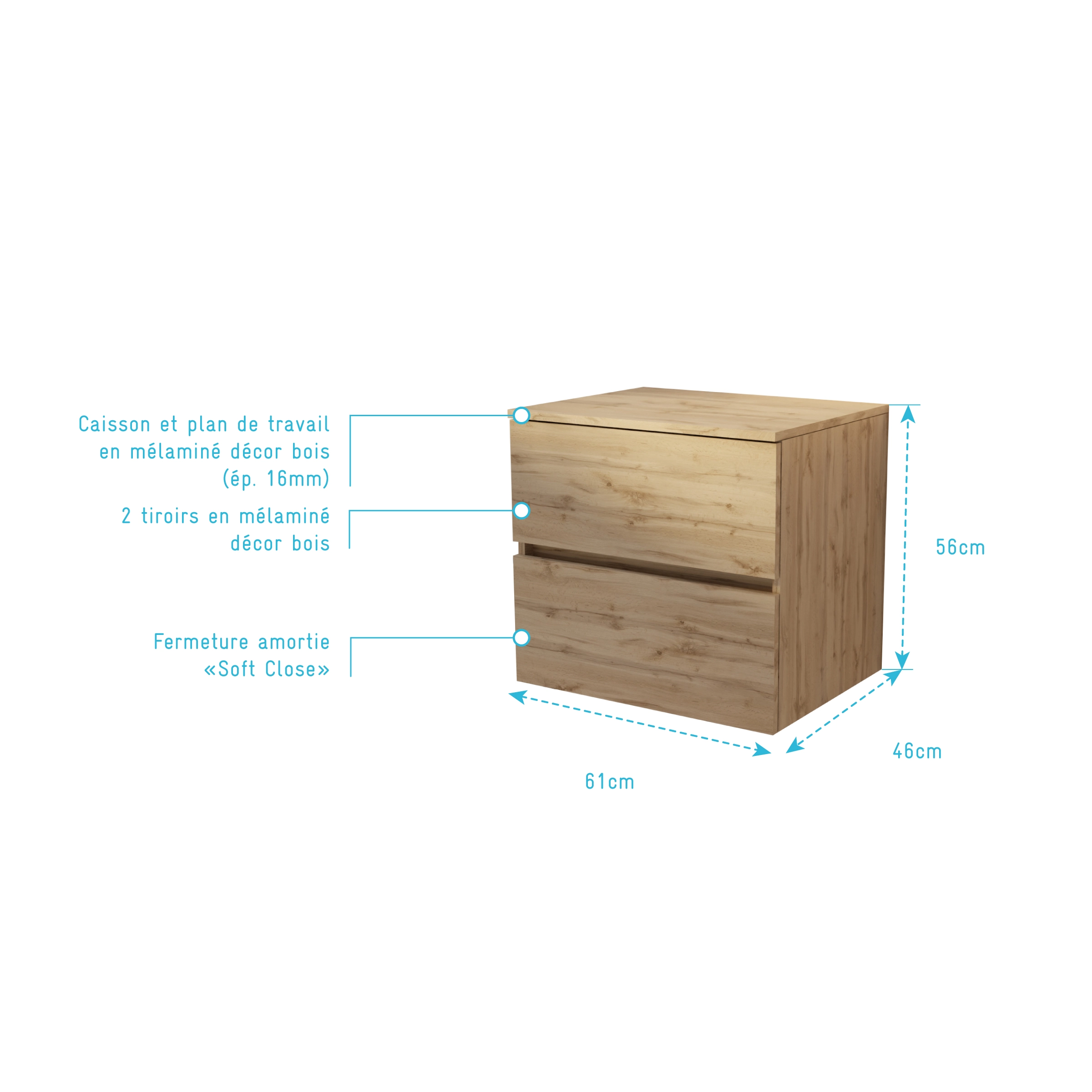 - Caisson et Plan en mélaminé décor chêne naturel (ép. 16 mm)