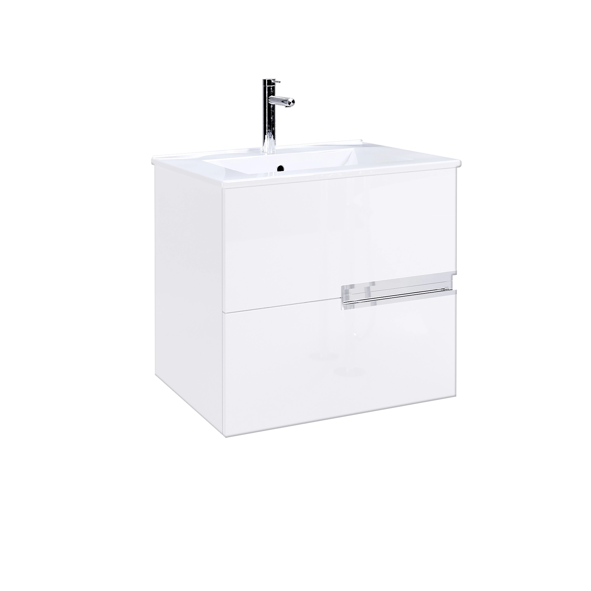 Meuble de salle de bains 60cm Blanc Glossy 2 tiroirs avec Vasque céramique blanche – ONE