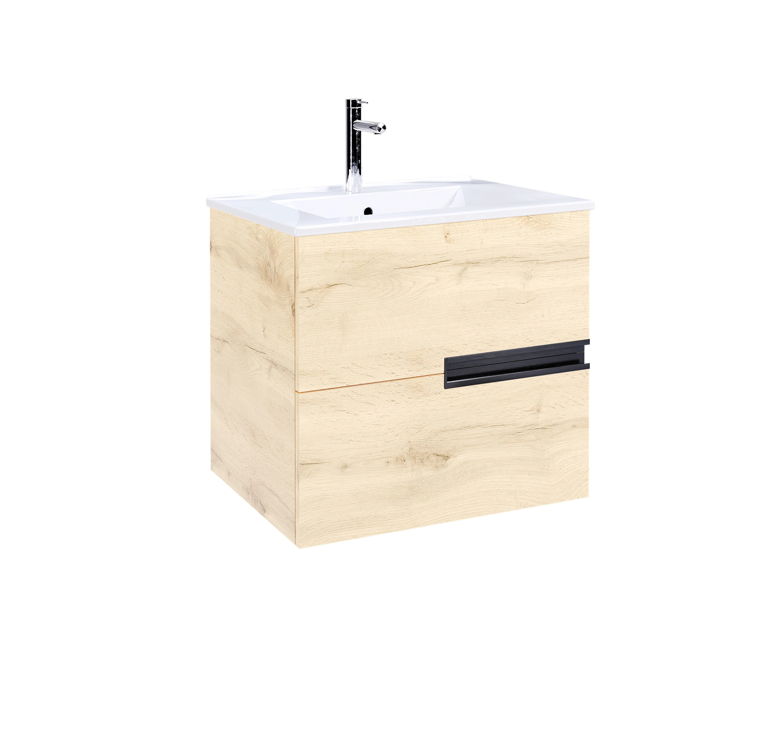 Meuble de salle de bains 60cm Chêne Clair 2 tiroirs avec Vasque céramique blanche – ONE