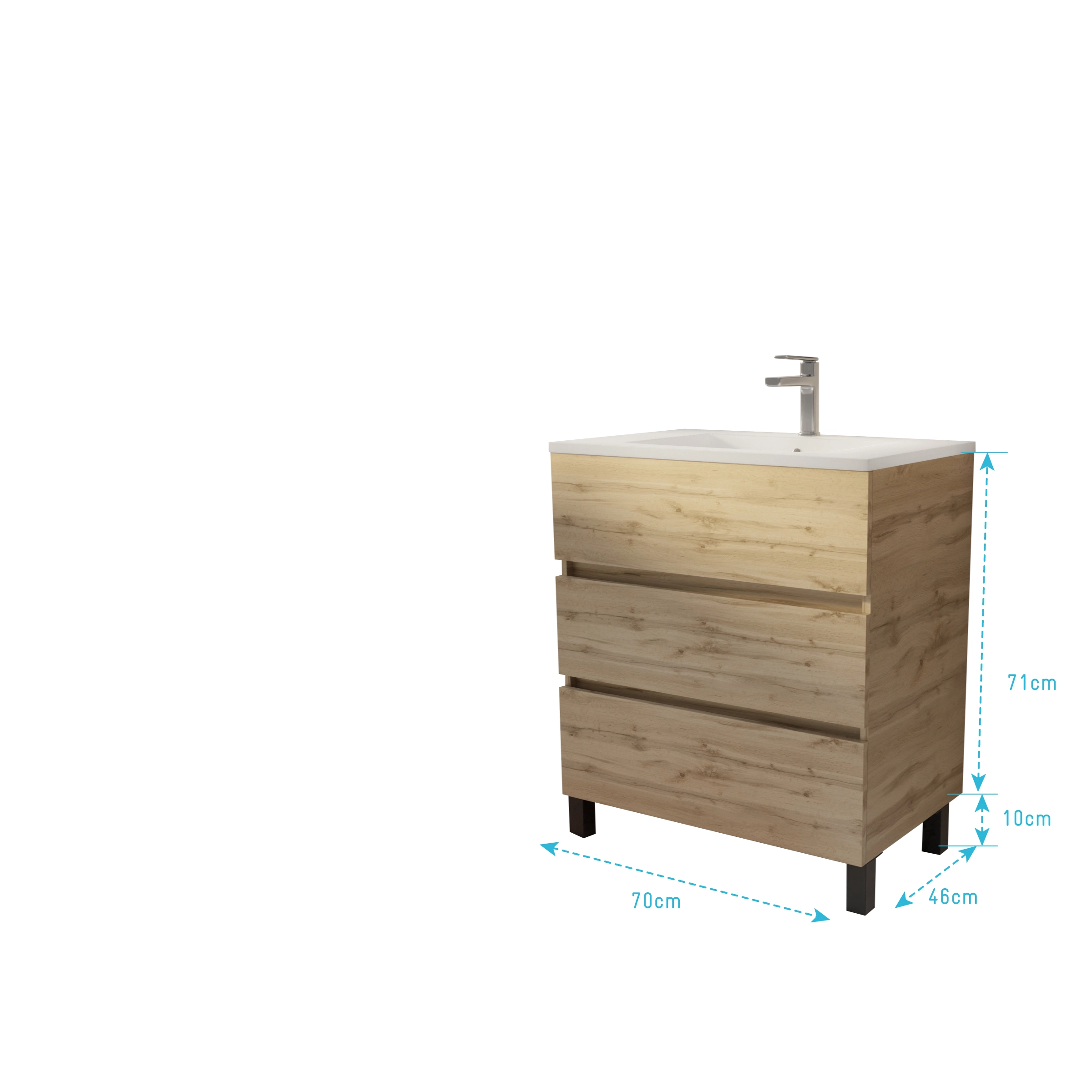 4 avis pour Meuble de salle de bains 70 cm TIMBER – Décor Chêne Naturel 3 tiroirs avec Vasque blanche