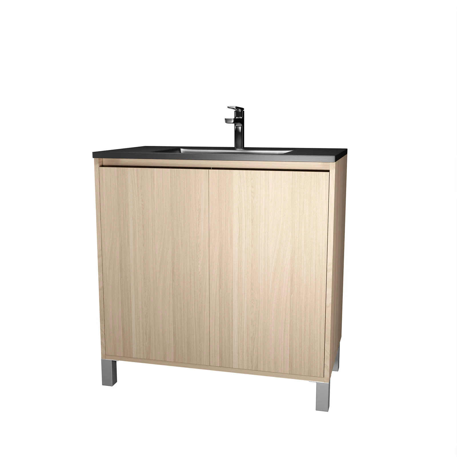 Meuble de salle de bains 80 cm 2 Portes Chêne Clair + Vasque Céramique Noire – XENOS