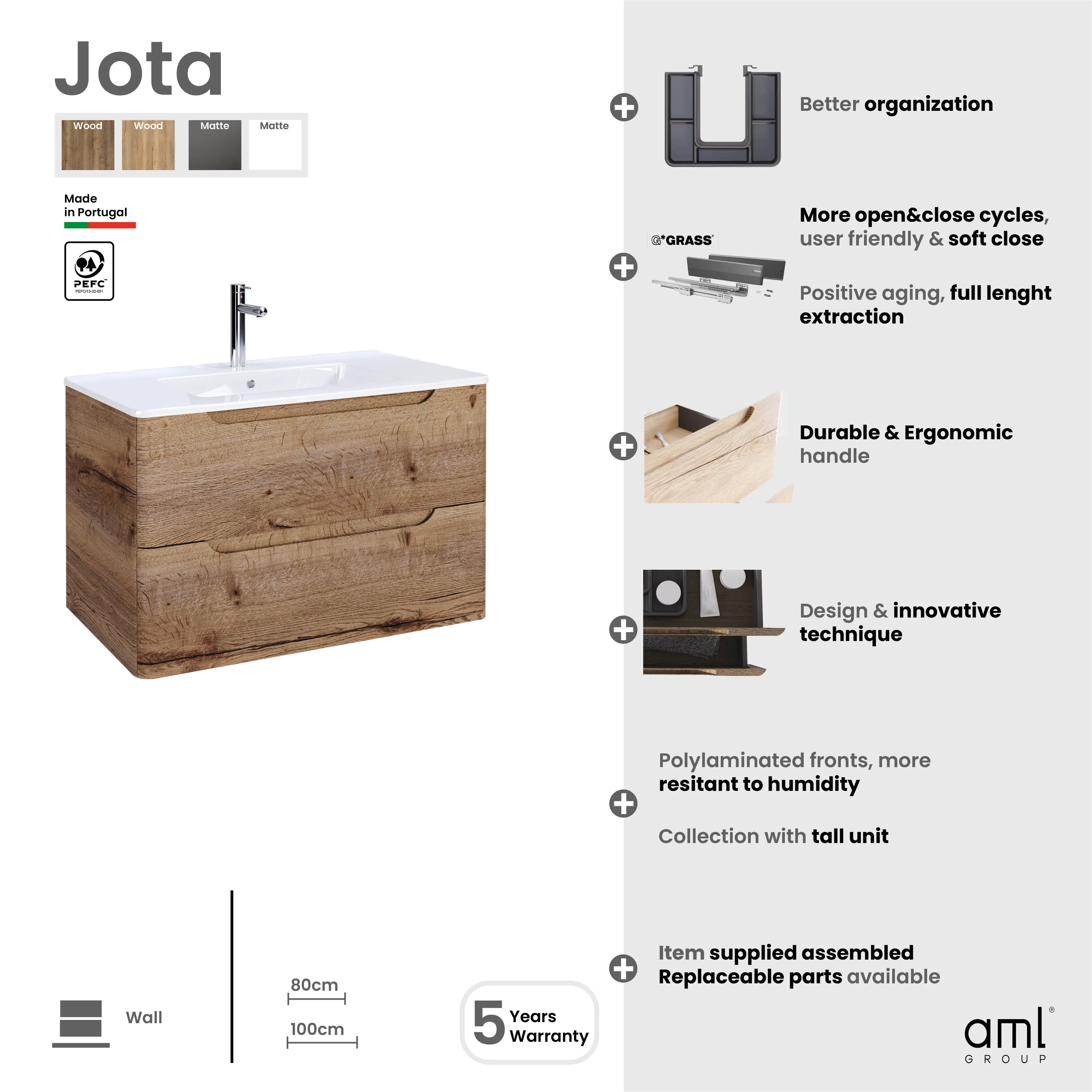 0 avis JOTA Meuble de salle de bains 80cm 3 tiroirs Chêne Clair - Vasque céramique blanche - JOTA