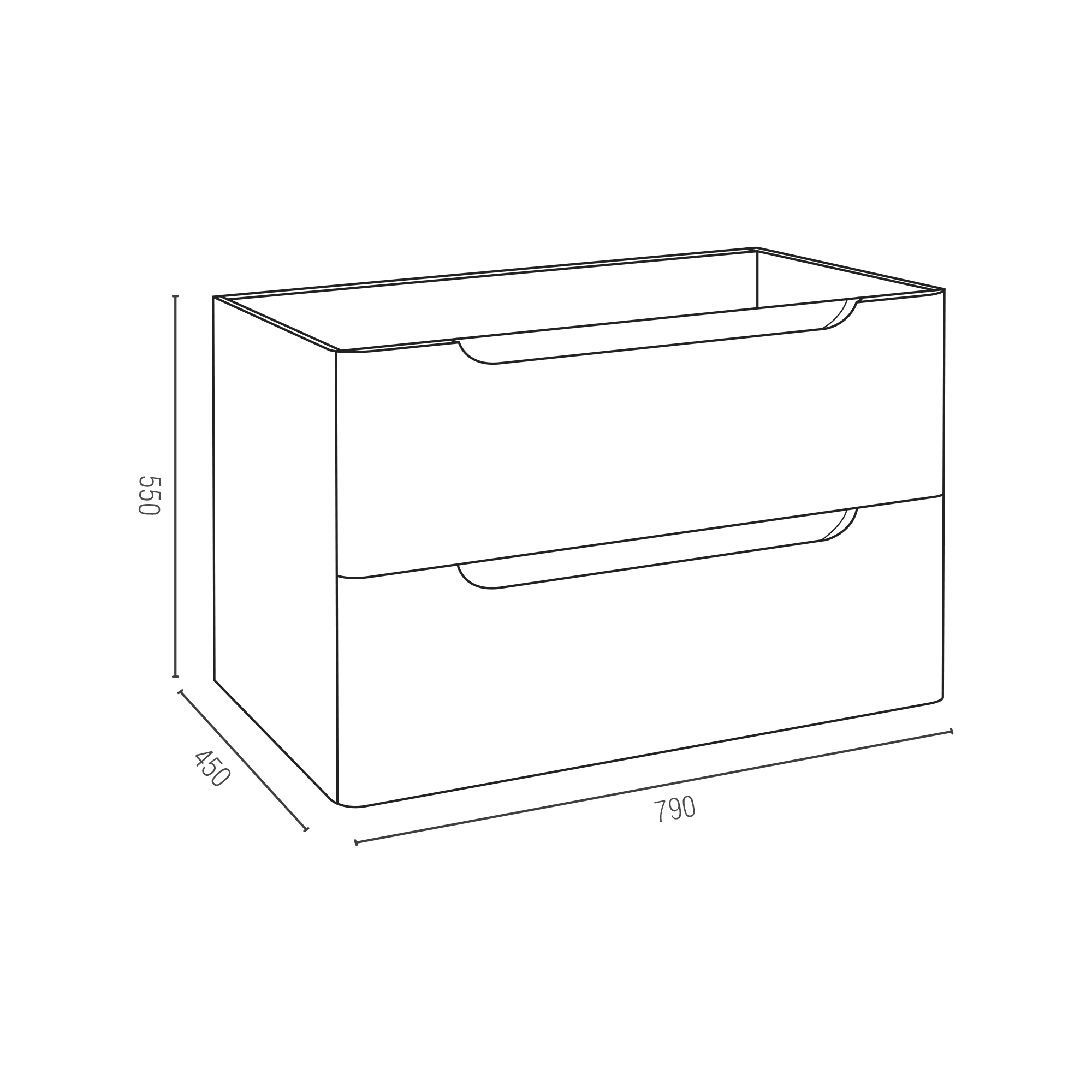 0 avis YUKI Meuble Salle de Bains YUKI 80 2 Tiroirs Décor Chêne et Noir Cranté - Plan et Vasque Blanche Mate