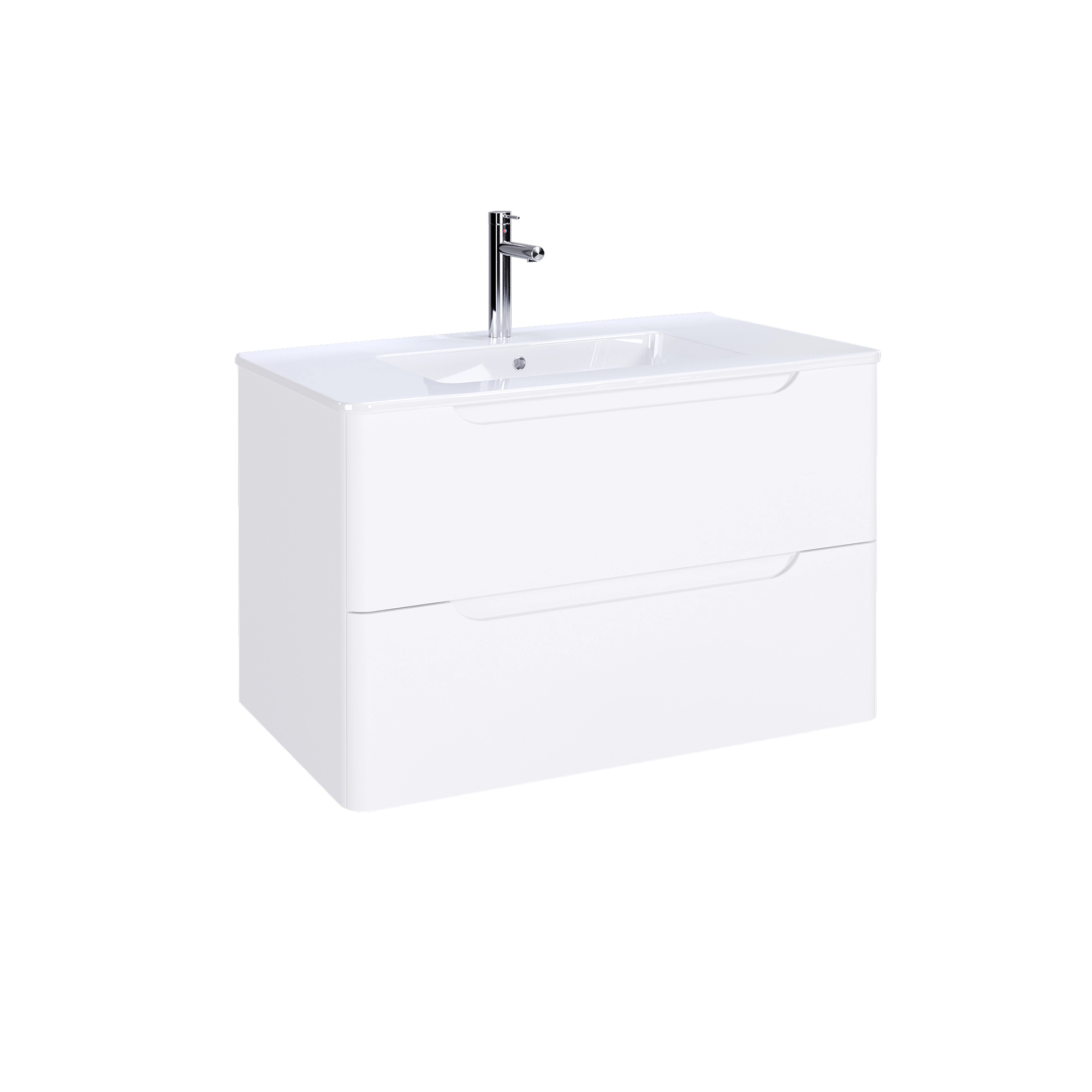 0 avis ELEMENTARY Meuble de Salle de Bains 80cm Suspendu Blanc 2 Tiroirs - Vasque Blanche - ELEMENTARY