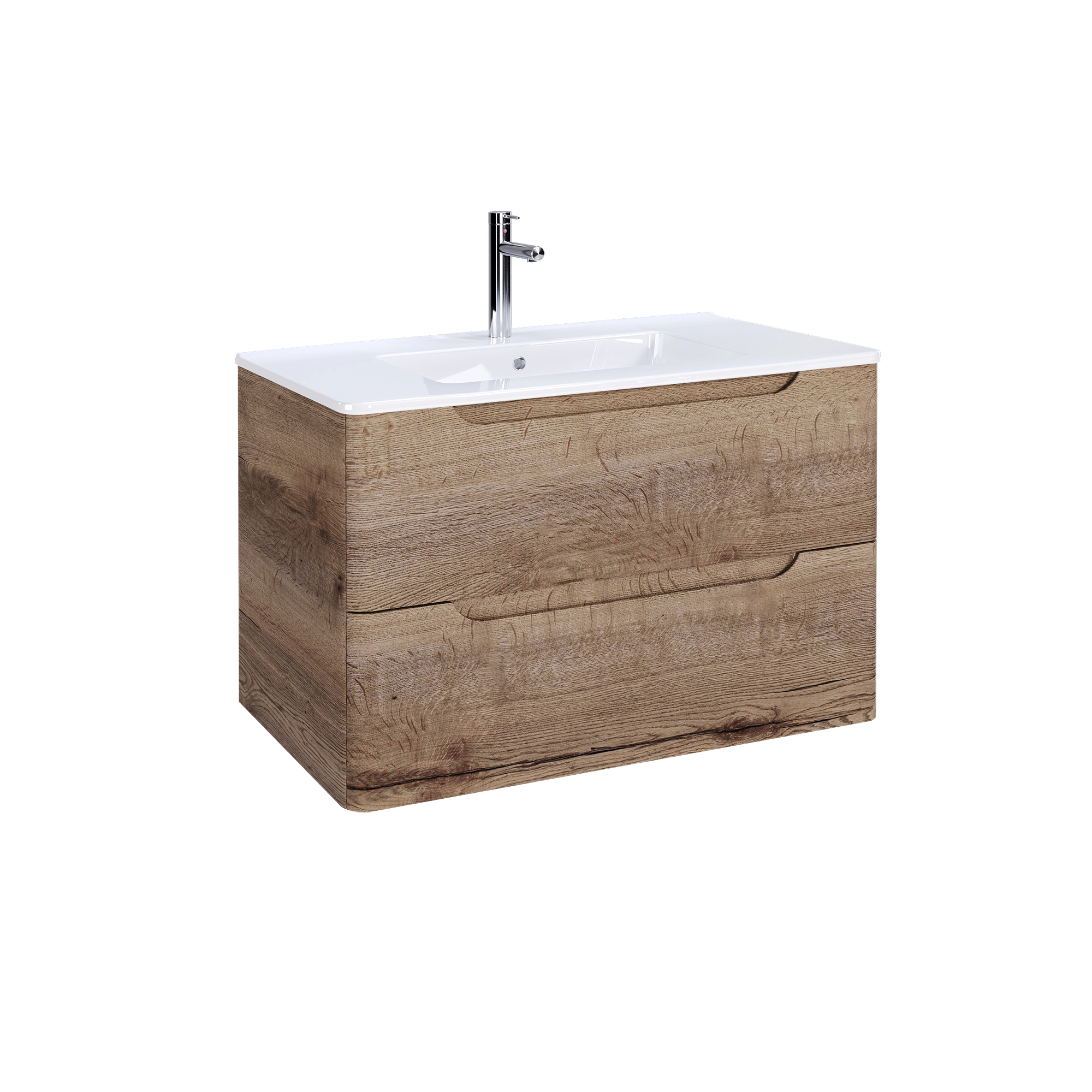 Meuble de salle de bains 80cm 2 tiroirs Chêne Foncé – Vasque céramique blanche – JOTA