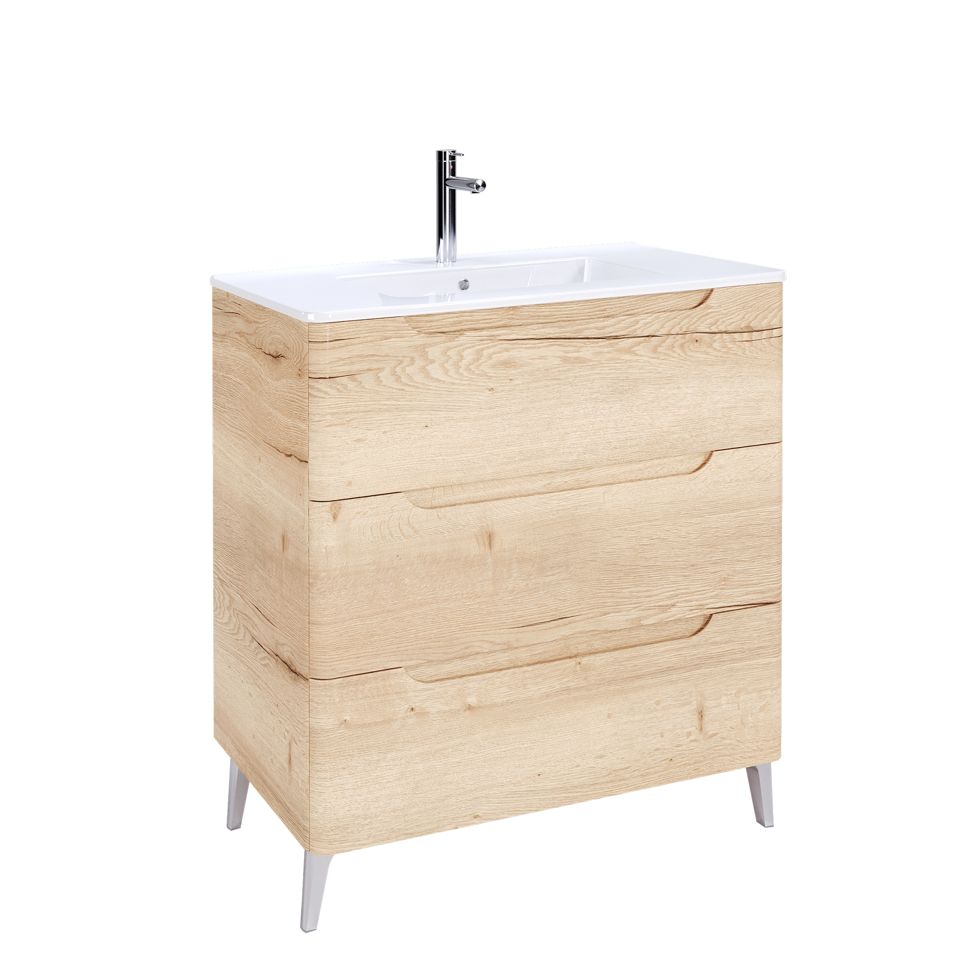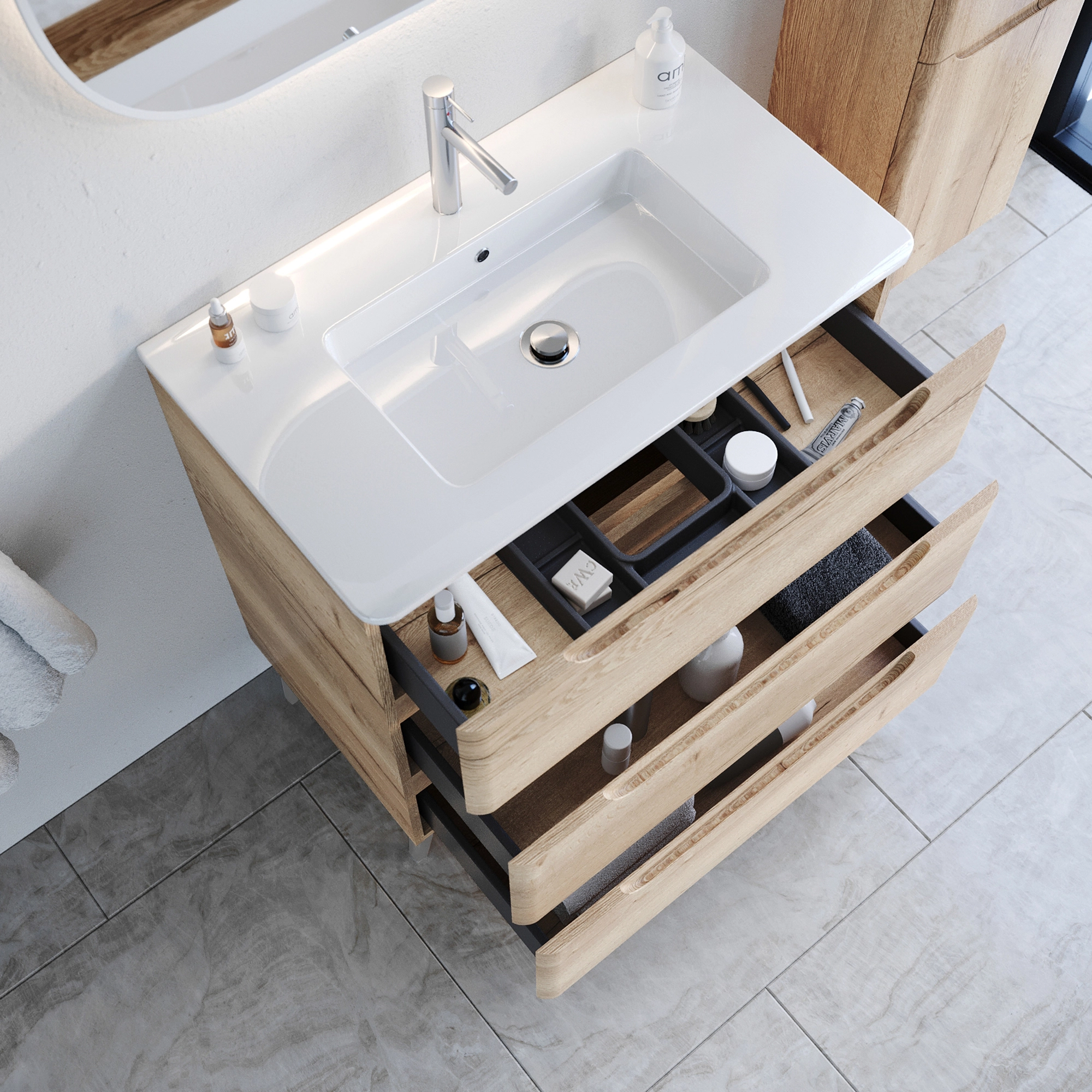 Meuble de salle de bains 80cm 3 tiroirs Chêne Clair – Vasque céramique blanche – JOTA