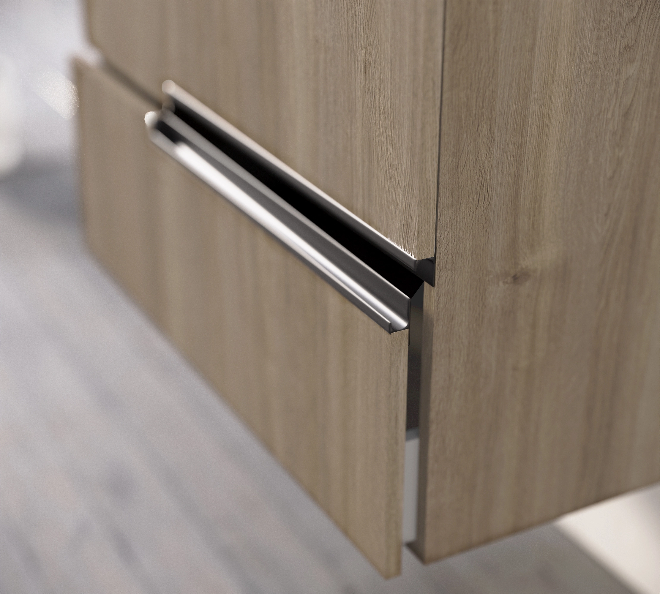 Avec ses 2 tiroirs à ouverture intégrale, ce meuble vous offre un accès complet et aisé à vos essentiels de salle de bains. Les poignées en aluminium robustes et ergonomiques assurent une prise en main confortable, alliant praticité et esthétique pour un usage quotidien fluide et agréable.