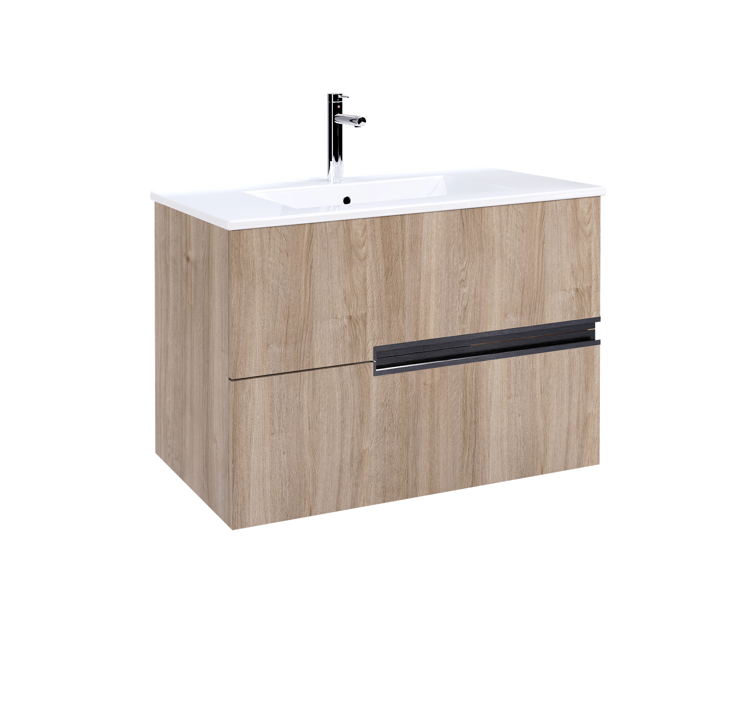 Meuble de salle de bains 80cm Chêne Foncé 2 tiroirs avec Vasque céramique blanche – ONE
