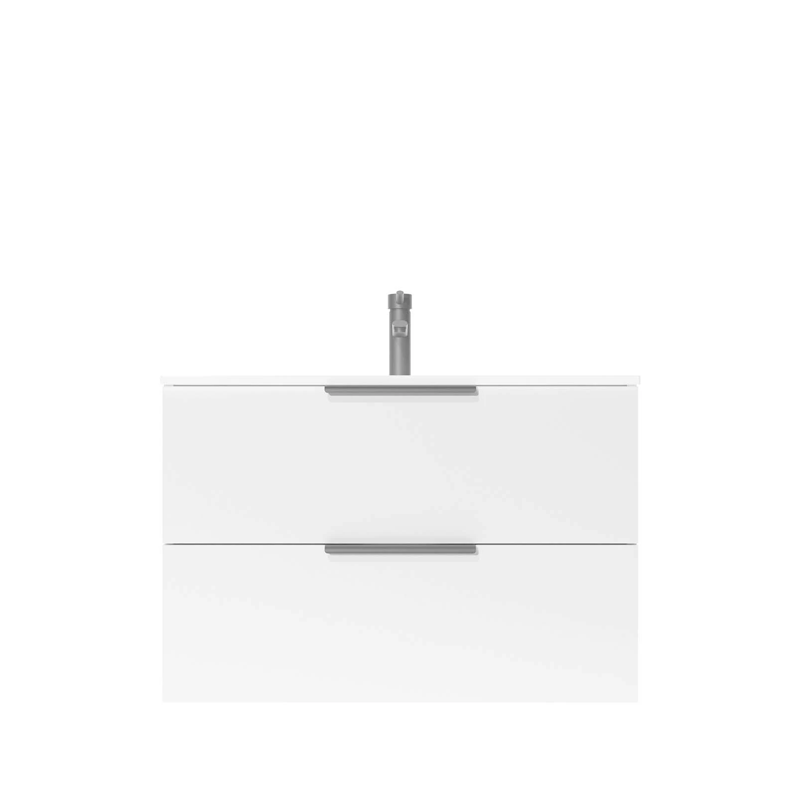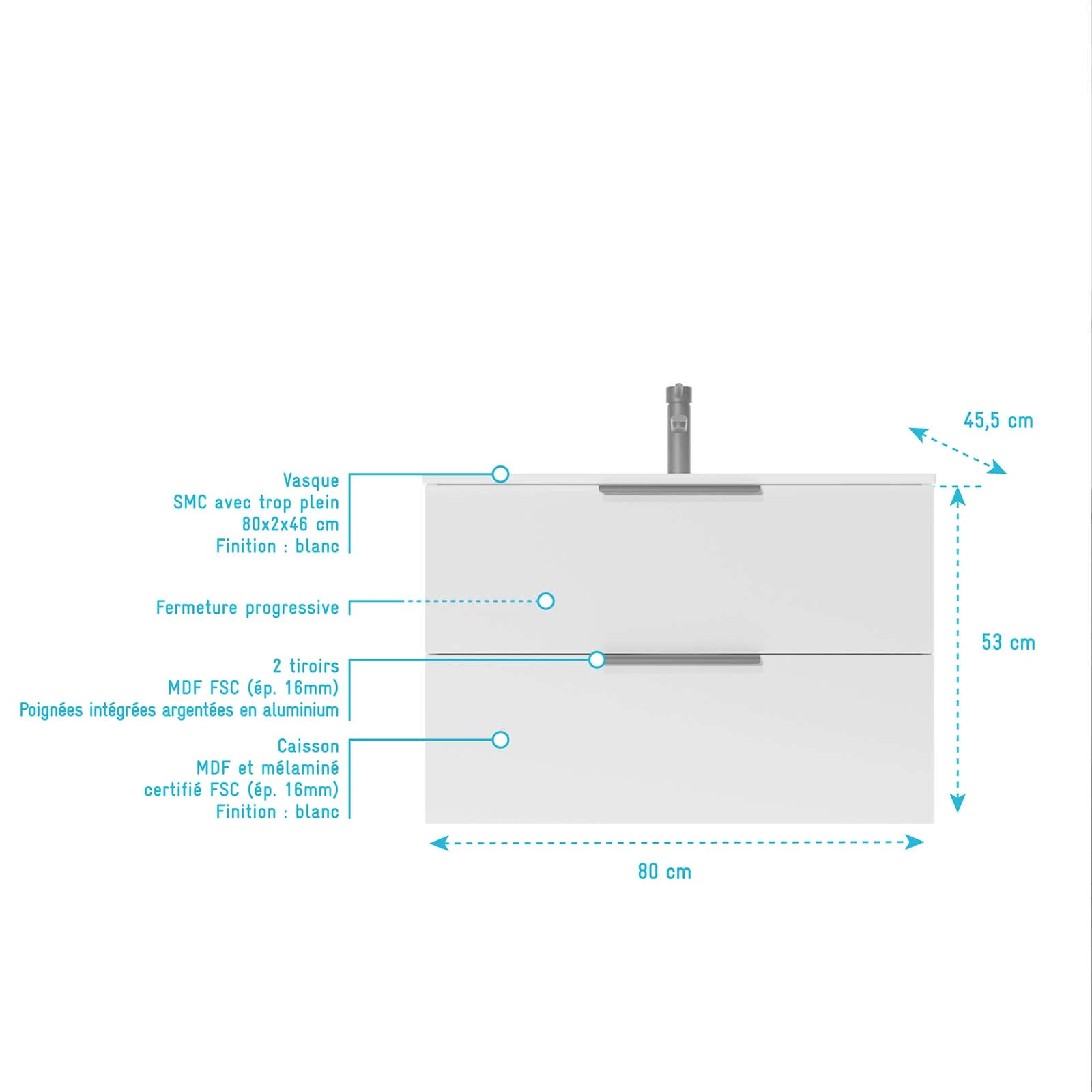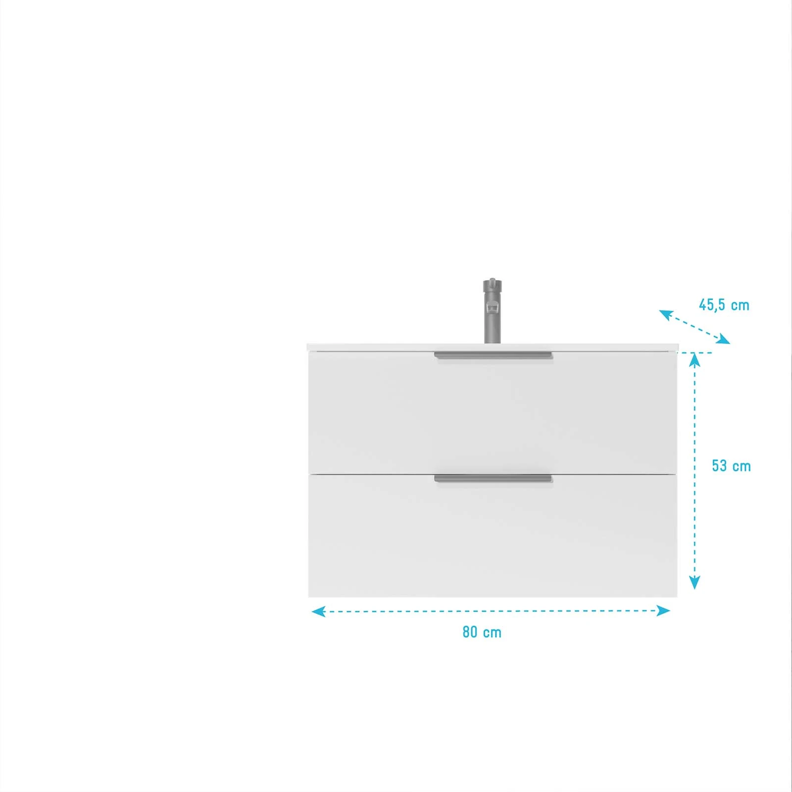Meuble de Salle de Bains 80cm Suspendu Blanc 2 Tiroirs – Vasque Blanche – ELEMENTARY
