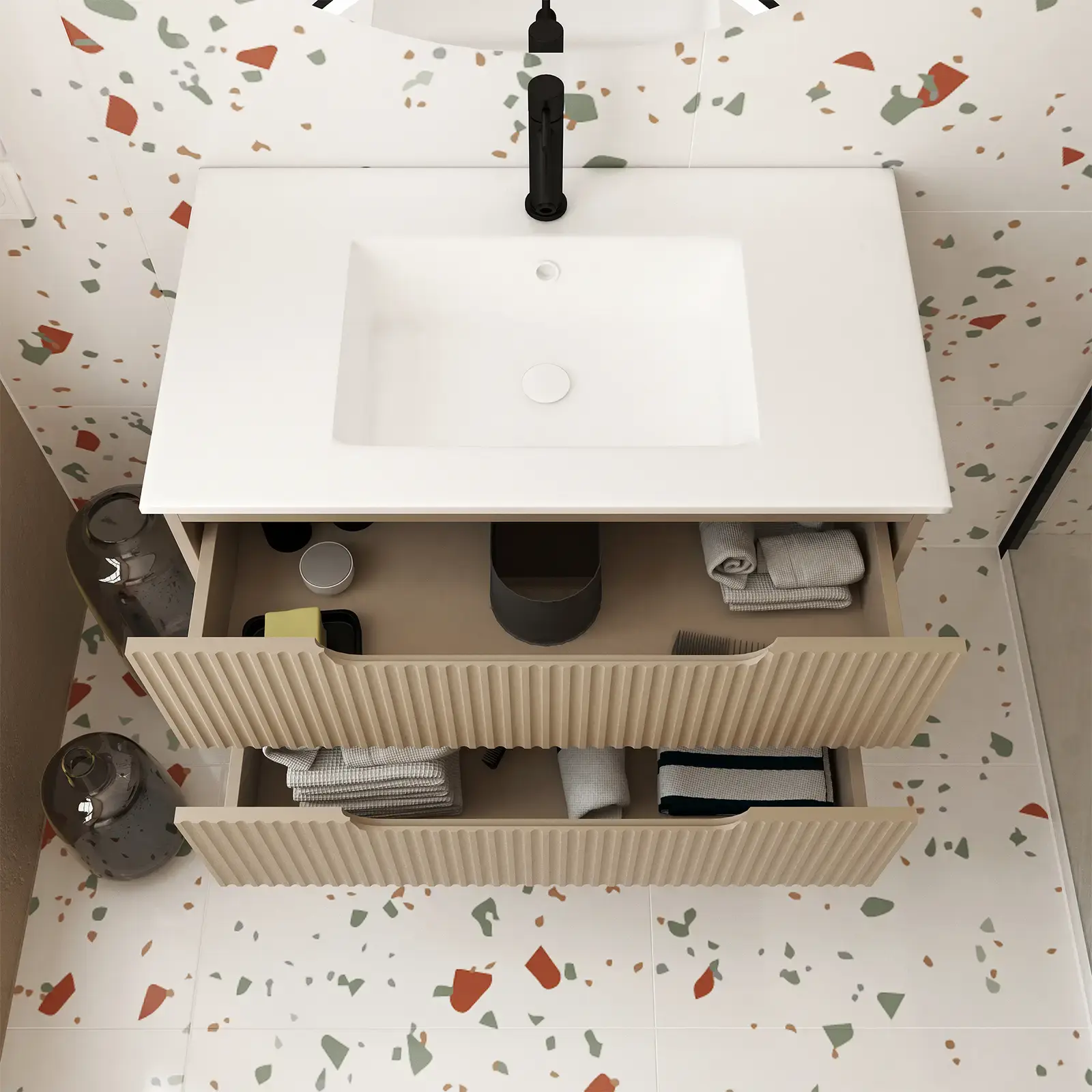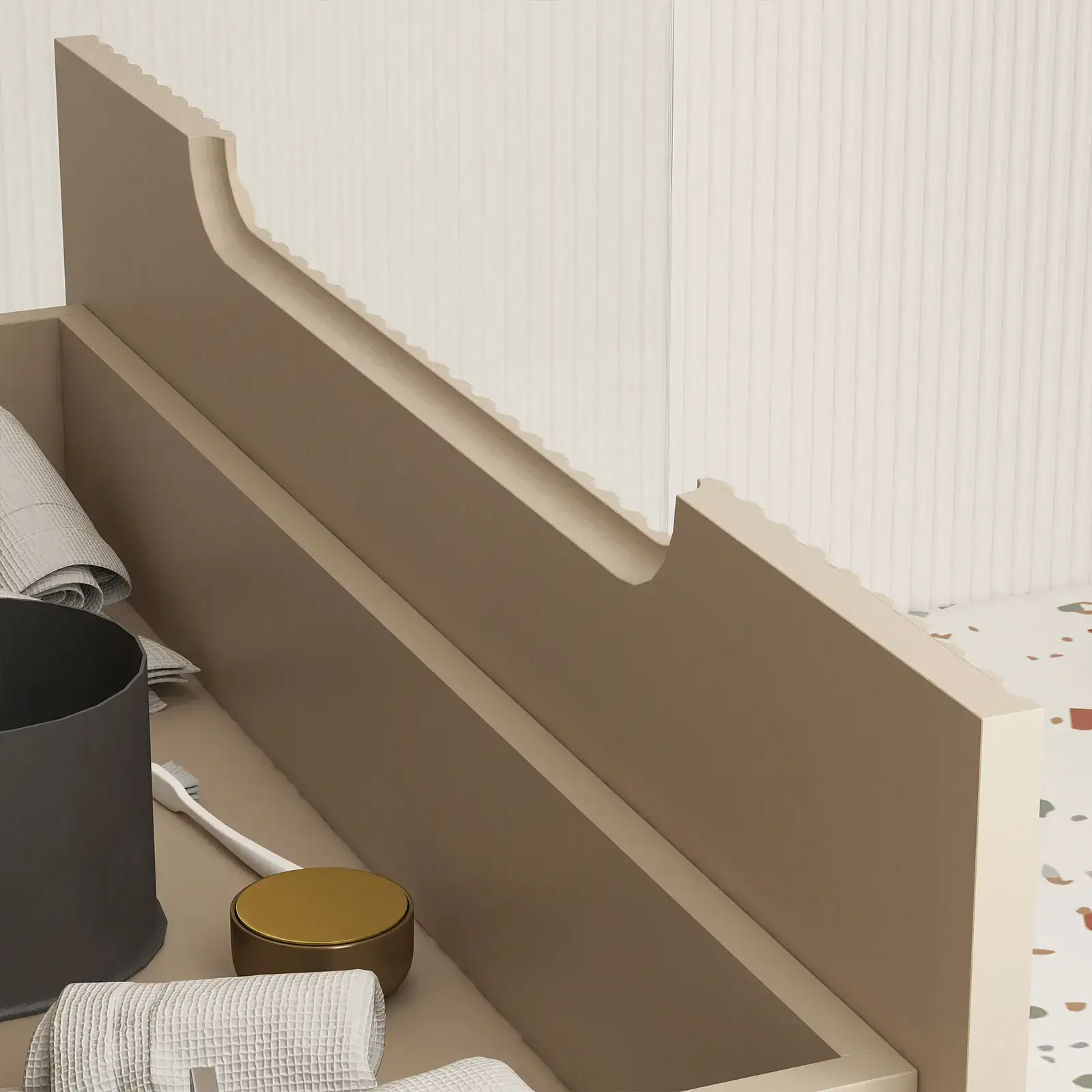 Les tiroirs ondulés incarnent l’esprit déco contemporain, offrant une esthétique dynamique et originale qui ne manquera pas de faire sensation dans votre salle de bain.