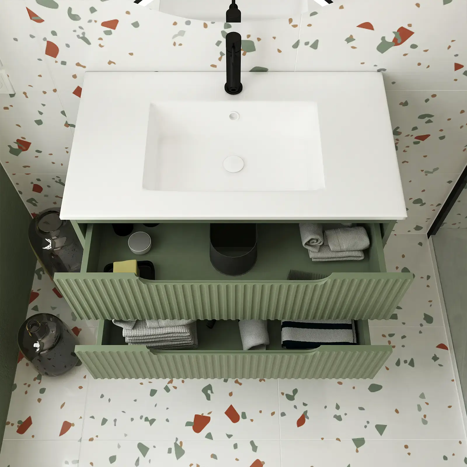 Les tiroirs ondulés incarnent l’esprit déco contemporain, offrant une esthétique dynamique et originale qui ne manquera pas de faire sensation dans votre salle de bain.