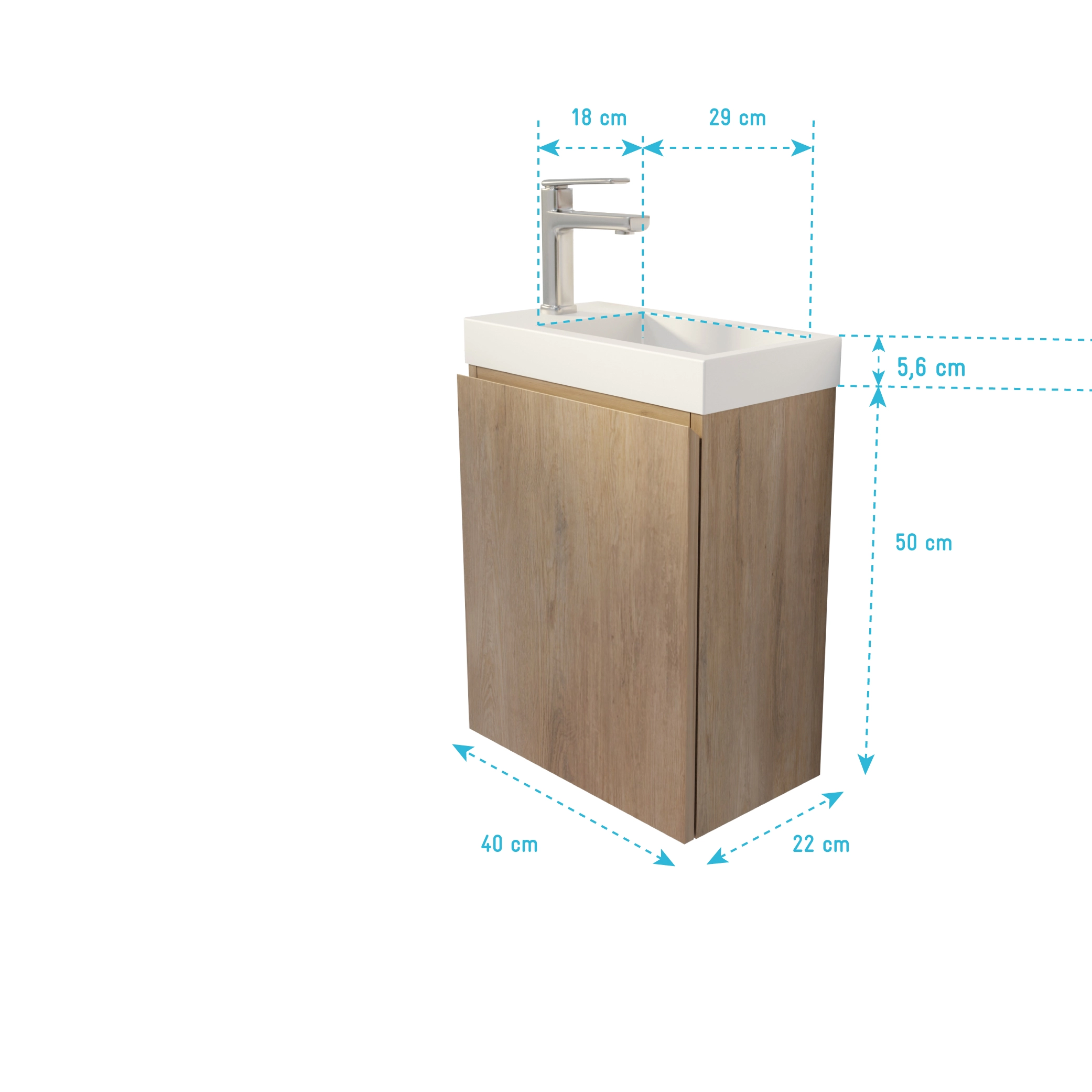 11 avis pour Meuble Lave Mains Décor Bois 40x50x22 cm avec Vasque en SMC Blanche – ELEMENTARY