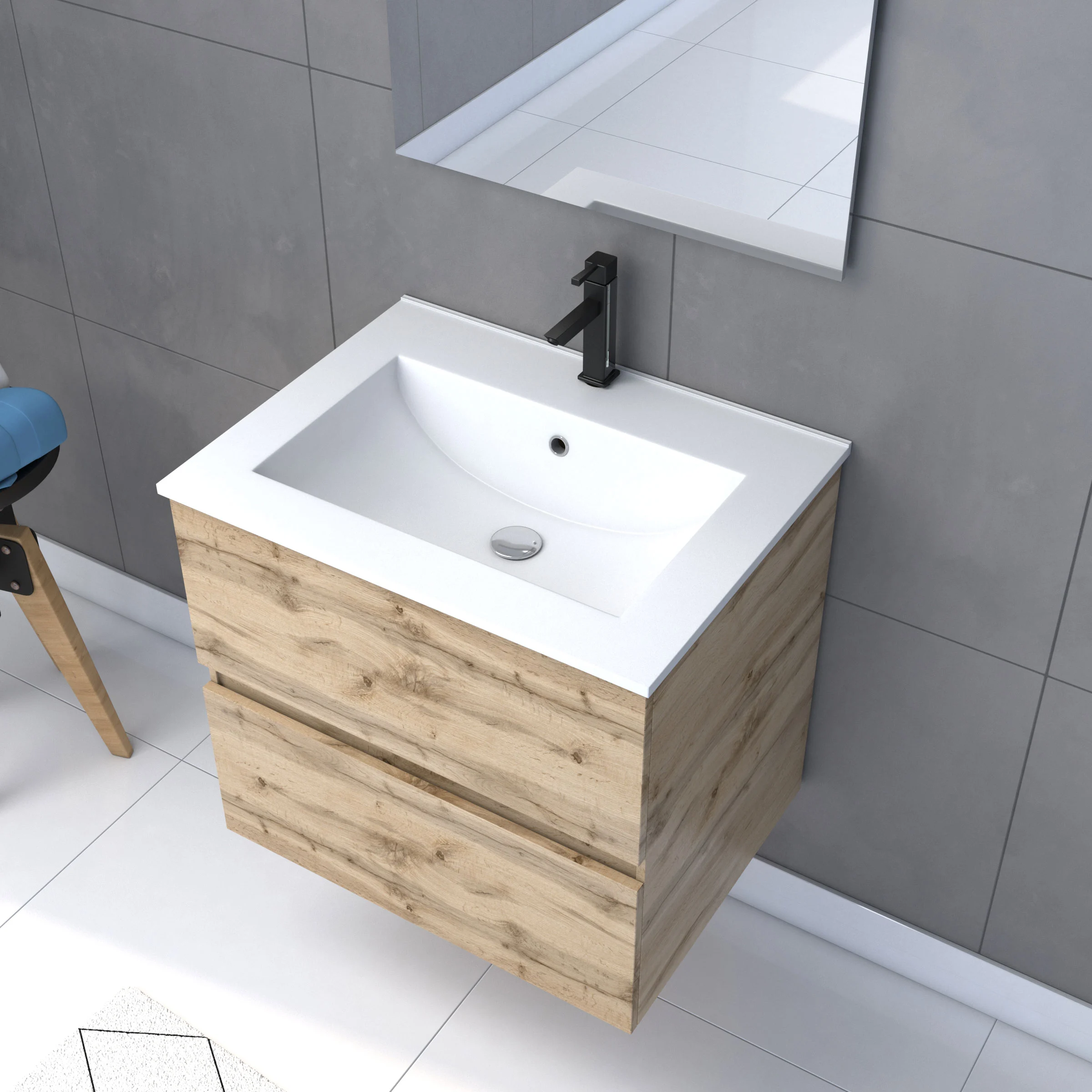 0 avis ONE Meuble de salle de bains 60cm Chêne Clair 2 tiroirs avec Vasque céramique blanche - ONE