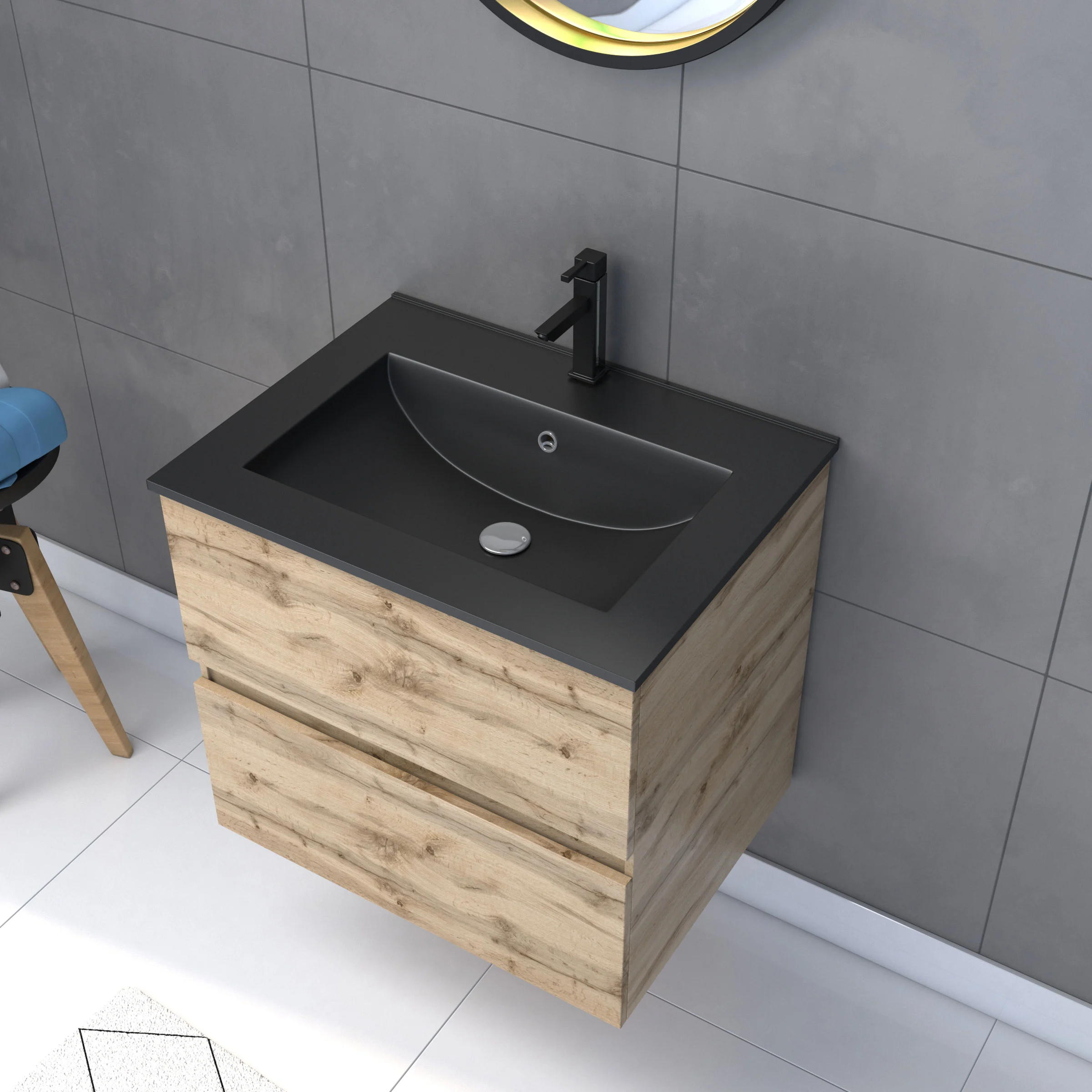 5 avis YUKI Meuble Salle de Bains YUKI 60 2 Tiroirs Décor Chêne et Noir Cranté - Plan et Vasque Blanche