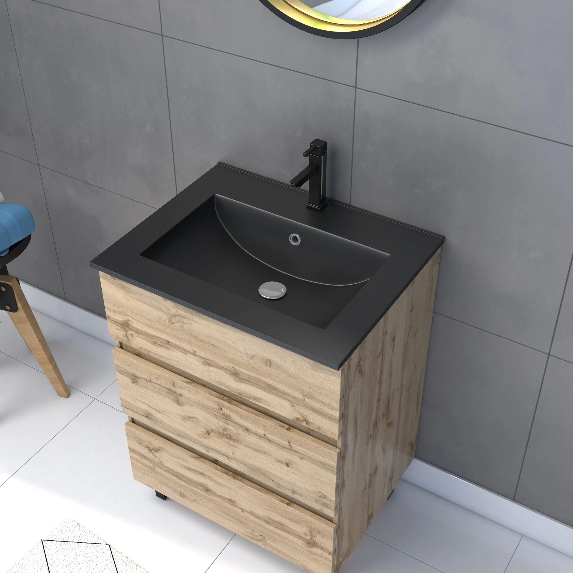 5 avis YUKI Meuble Salle de Bains YUKI 60 2 Tiroirs Décor Chêne et Noir Cranté - Plan et Vasque Blanche