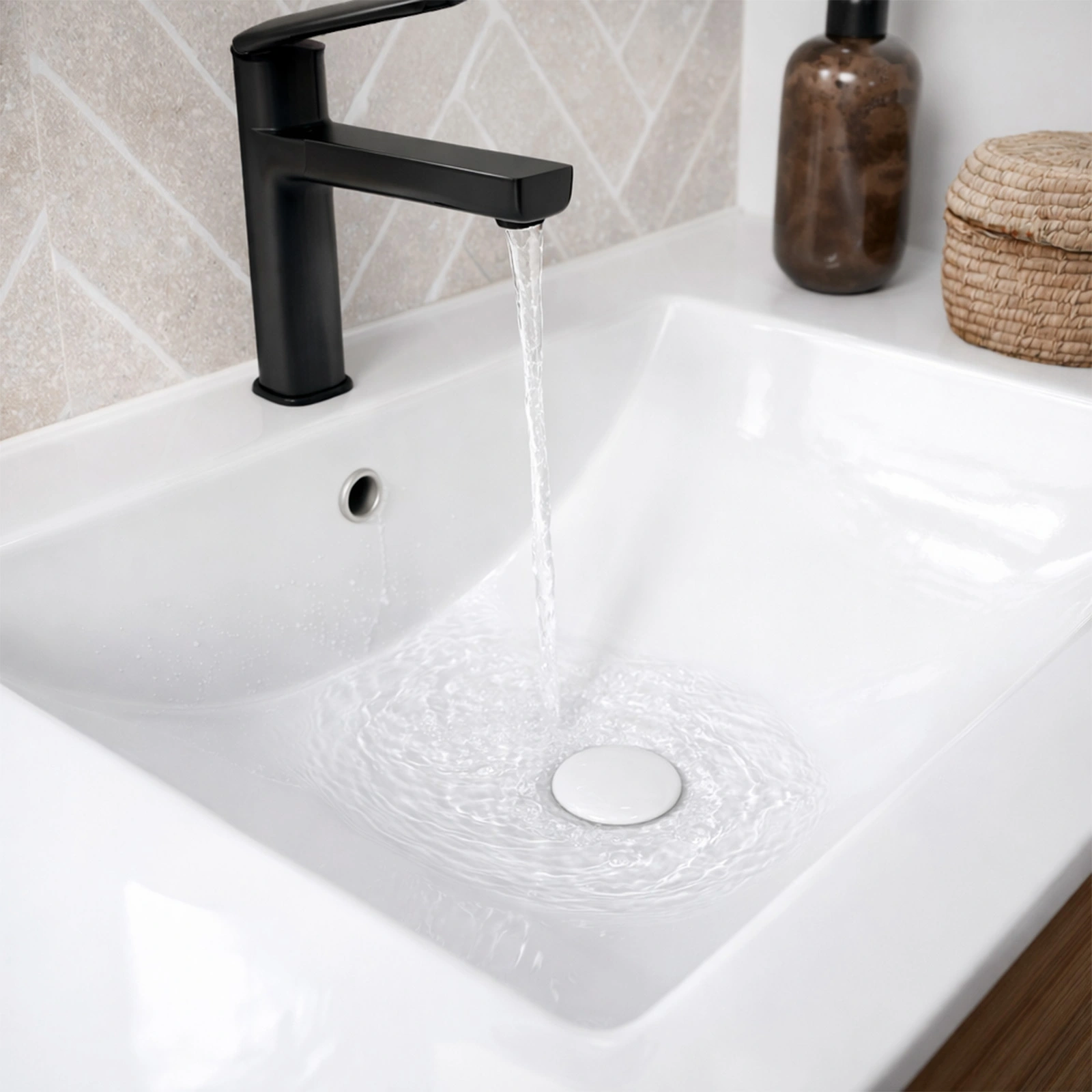 La vasque en céramique blanche, à la fois sobre et intemporelle, complète l’ensemble avec finesse. Facile d’entretien, elle allie praticité et esthétisme pour un usage quotidien sans compromis.