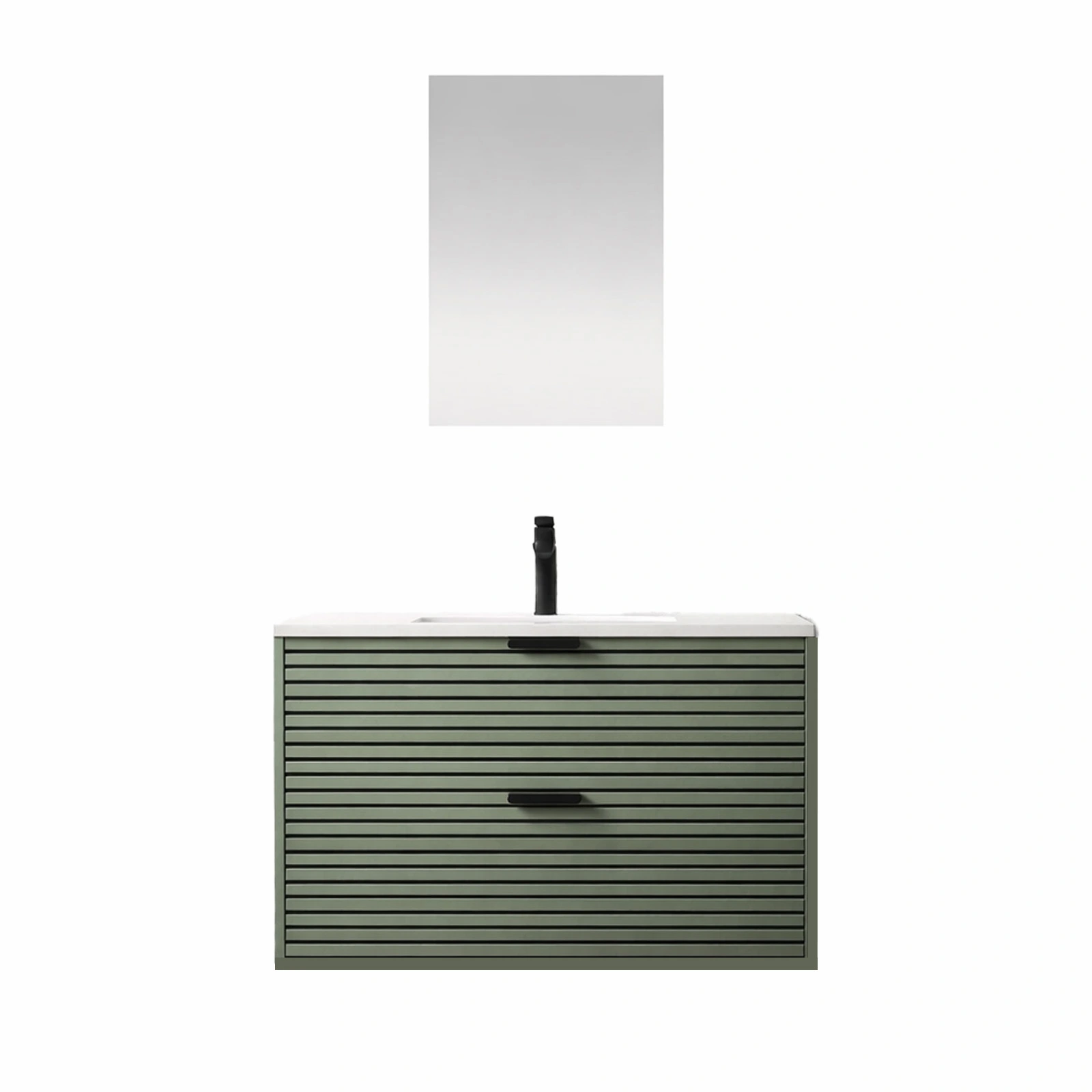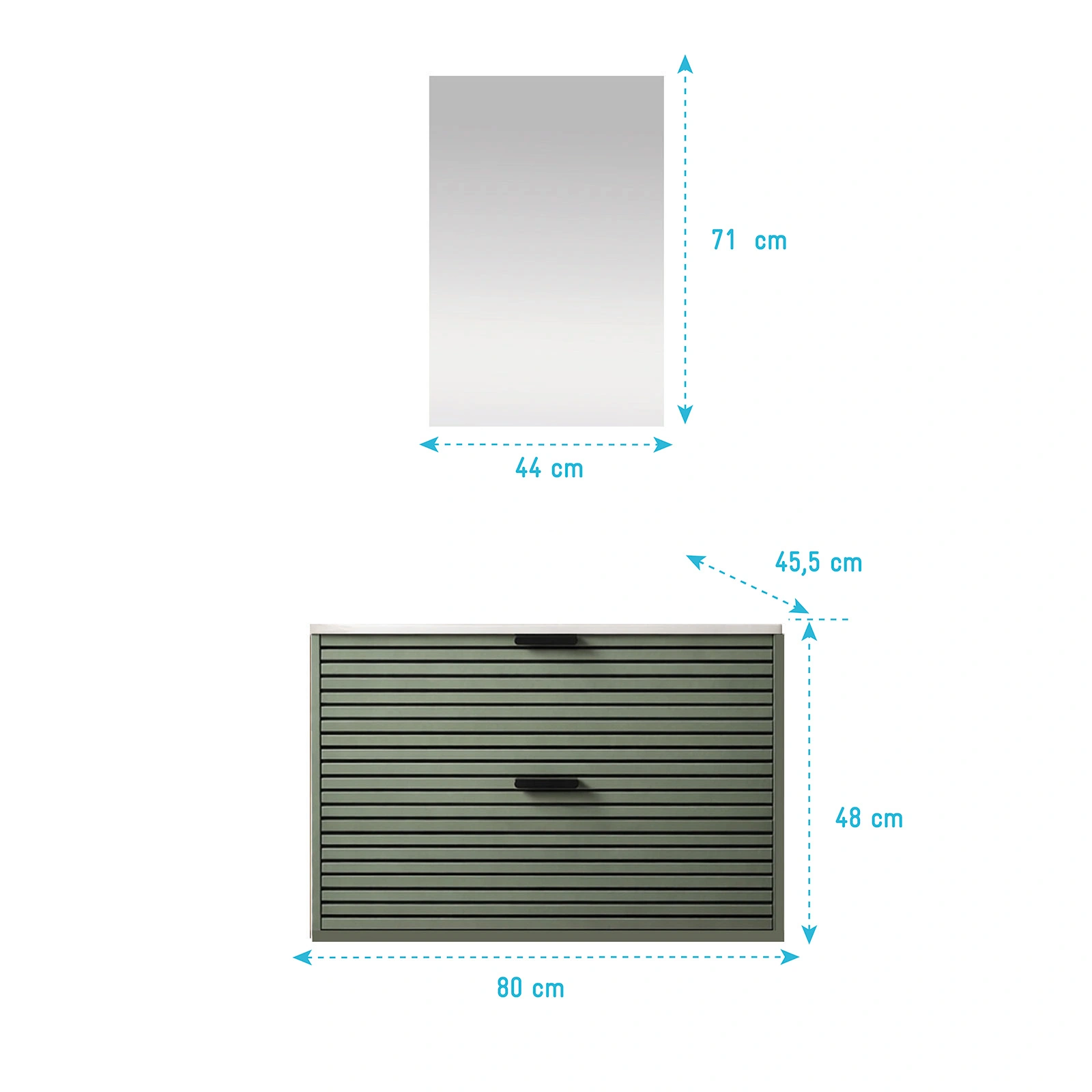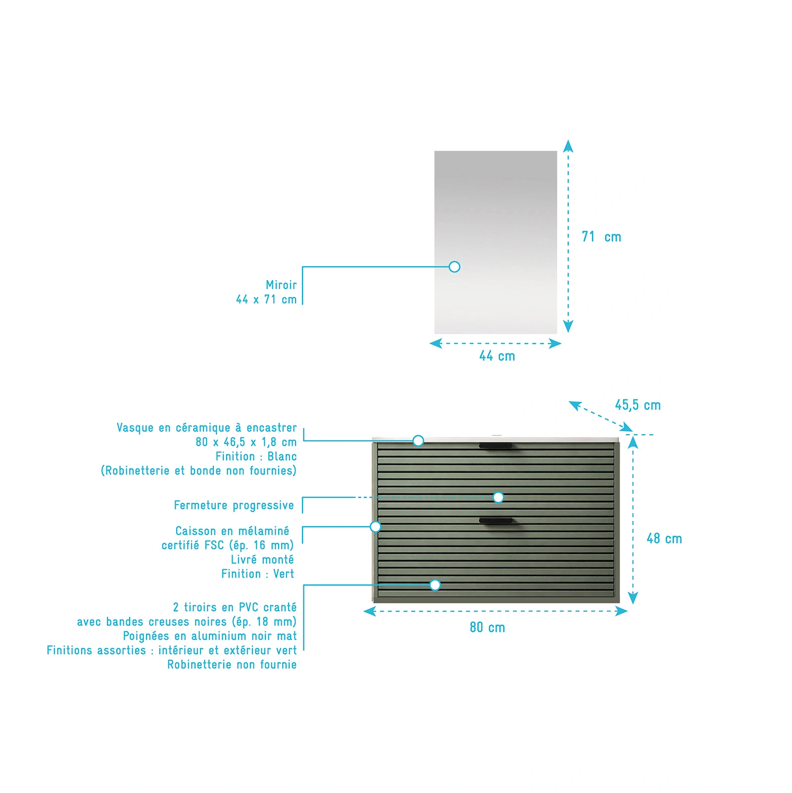 Meuble Salle de Bain Cranté Vert et Noir 80cm – 2 Tiroirs, Vasque et Miroir – MALO