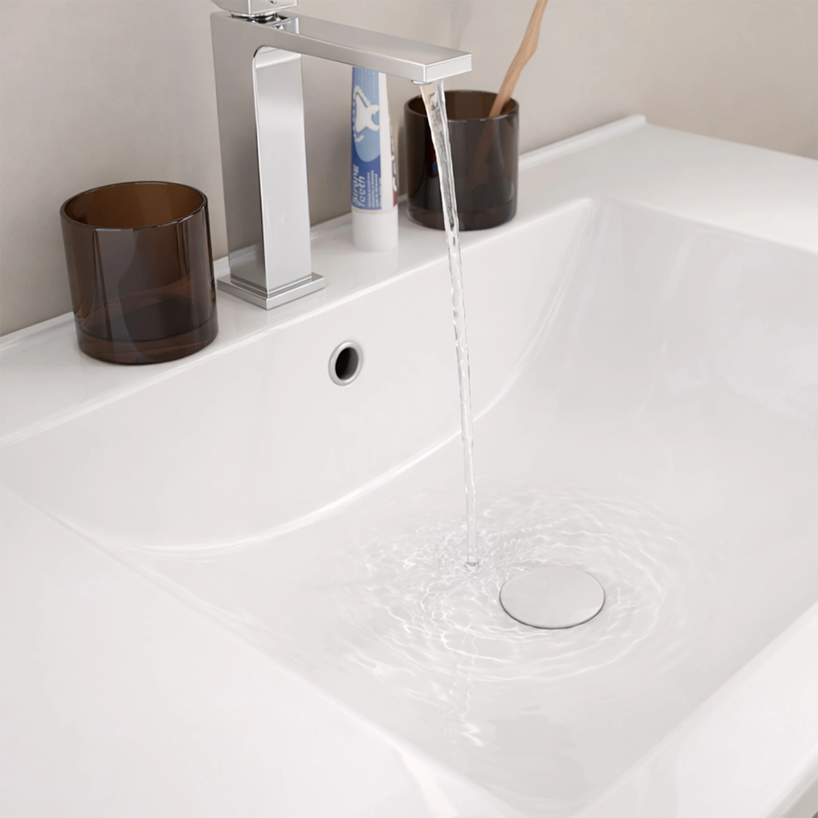 La vasque en céramique blanche, à la fois sobre et intemporelle, complète l’ensemble avec finesse. Facile d’entretien, elle allie praticité et esthétisme pour un usage quotidien sans compromis.
