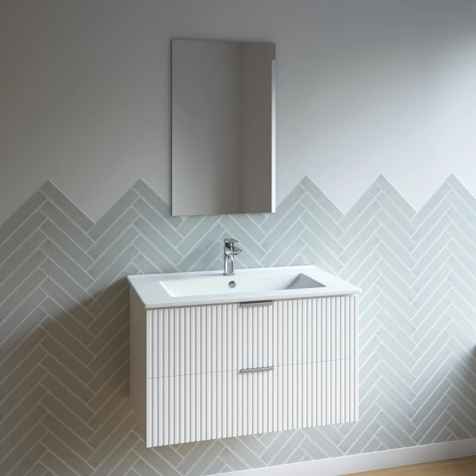 Meuble salle de bain simple vasque 80cm blanc MDF ondulé