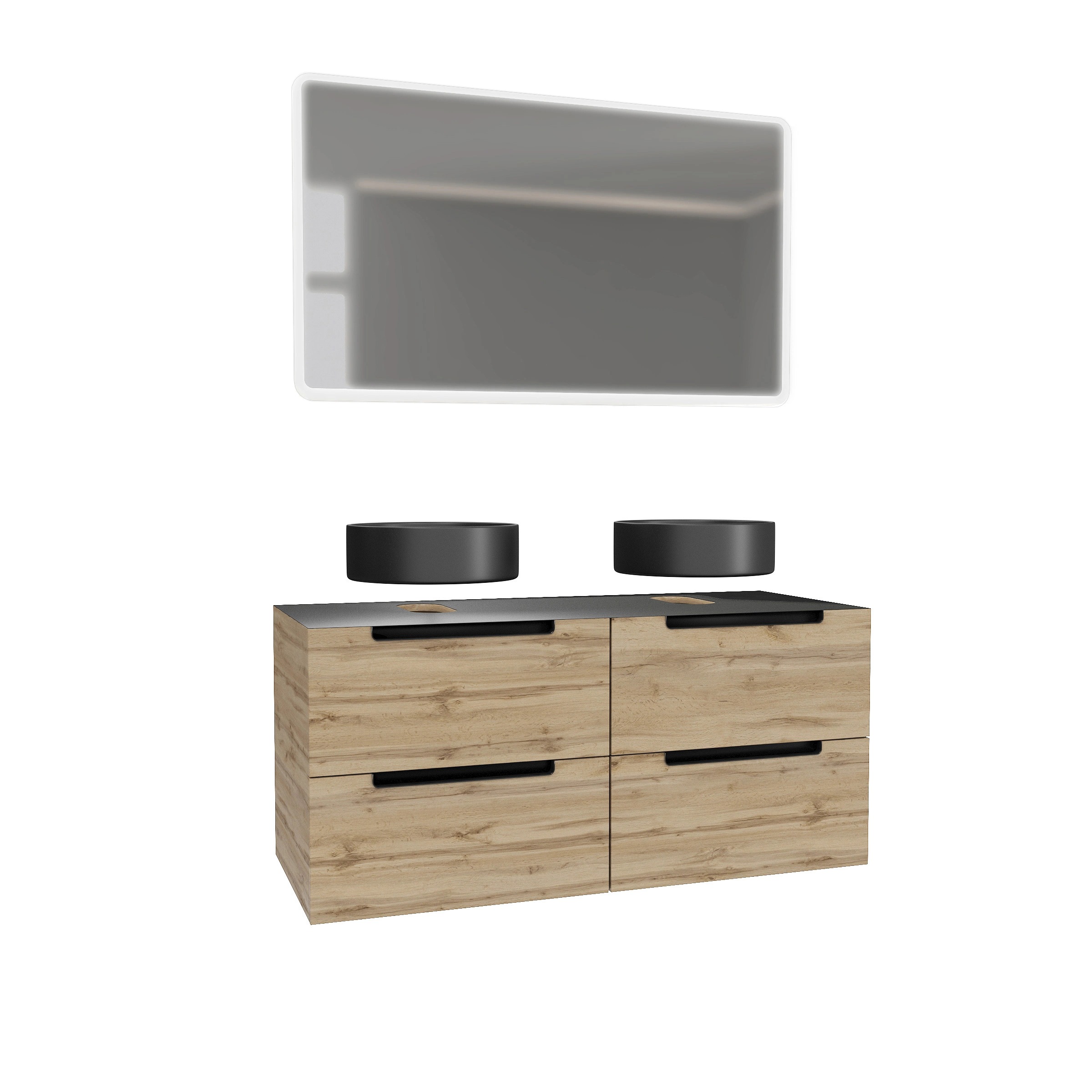 0 avis TIMBER Meuble de salle de bains 120 TIMBER Décor Chêne 2 tiroirs - Vasque noire à poser Miroir LED 120x70