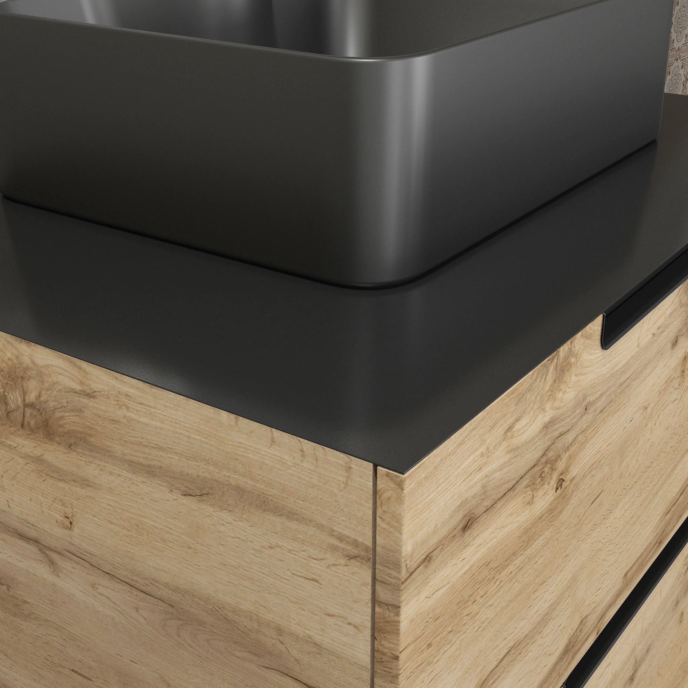 0 avis YUKI Meuble Salle de Bains YUKI 80 2 Tiroirs Décor Chêne et Noir Cranté - Plan et Vasque Blanche Mate
