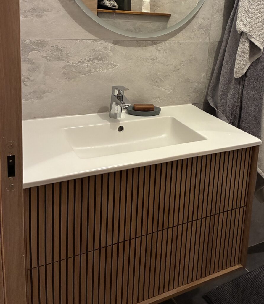 Parfait ! On a installé le 80 cm dans la salle de bain de notre fille, et elle l’adore. Solide, facile à nettoyer, et design qui s’intègre partout.