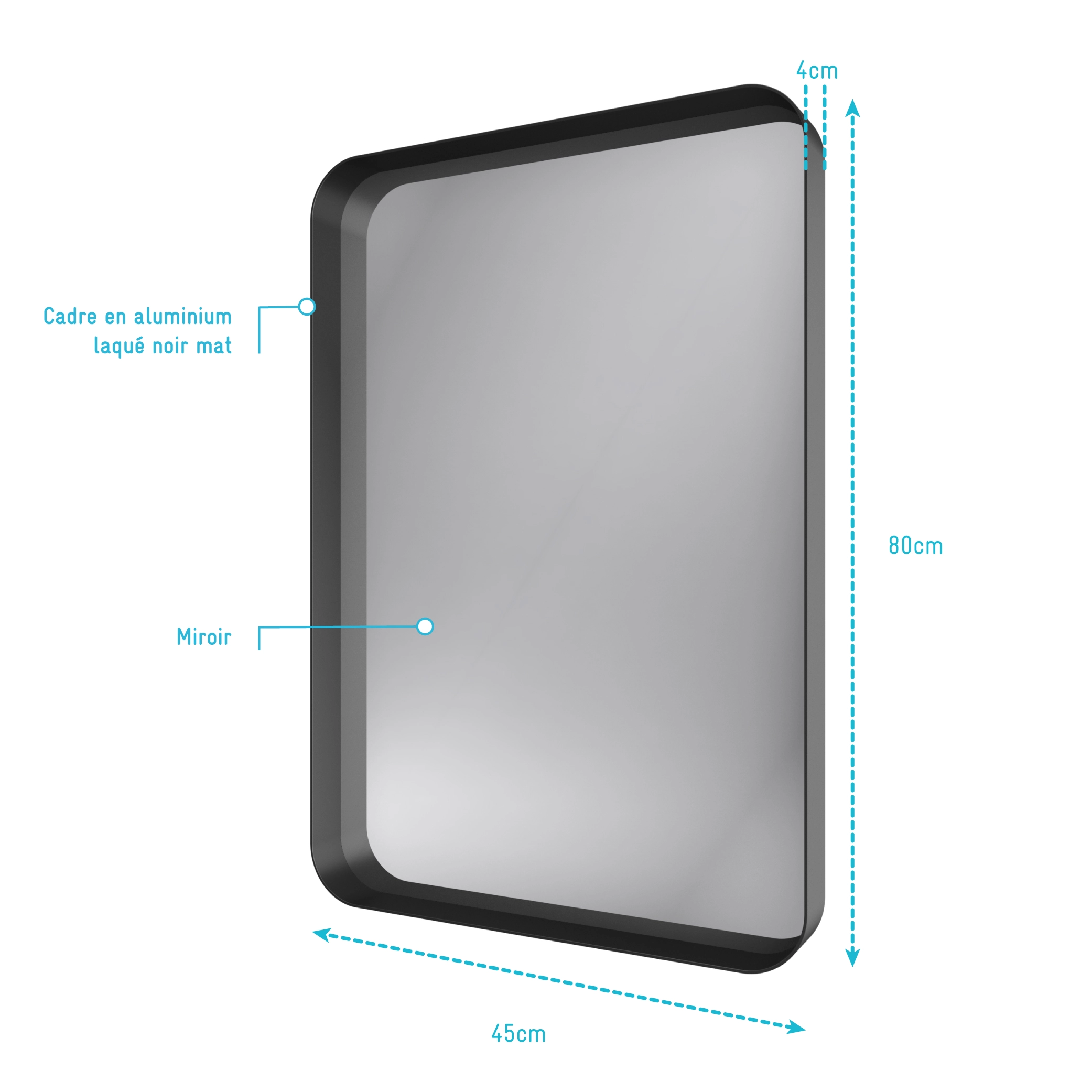 Miroir 80×45- Cadre en aluminium laque noir mat – UBY