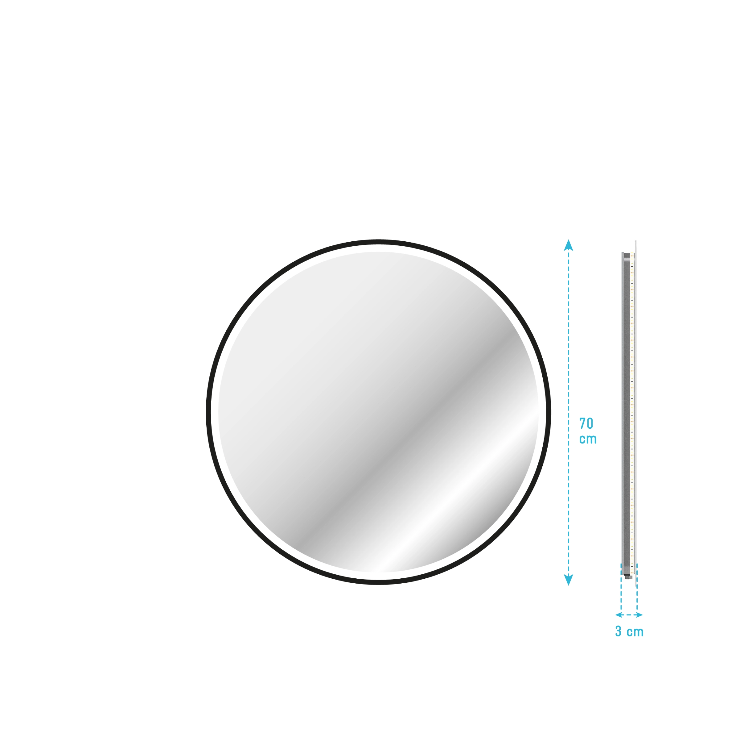 Miroir salle de bain ROND avec éclairage LED et contour noir – Diam 70cm