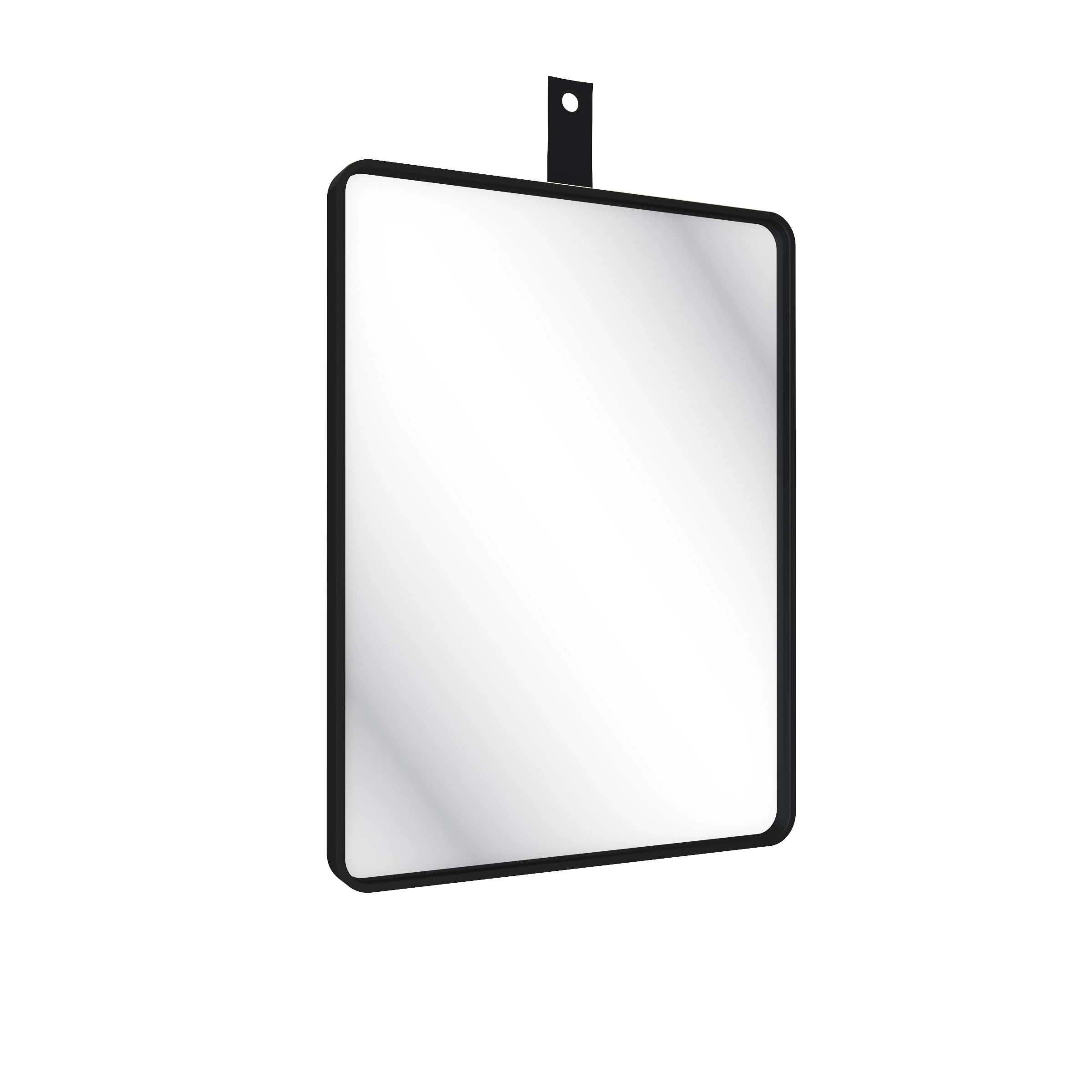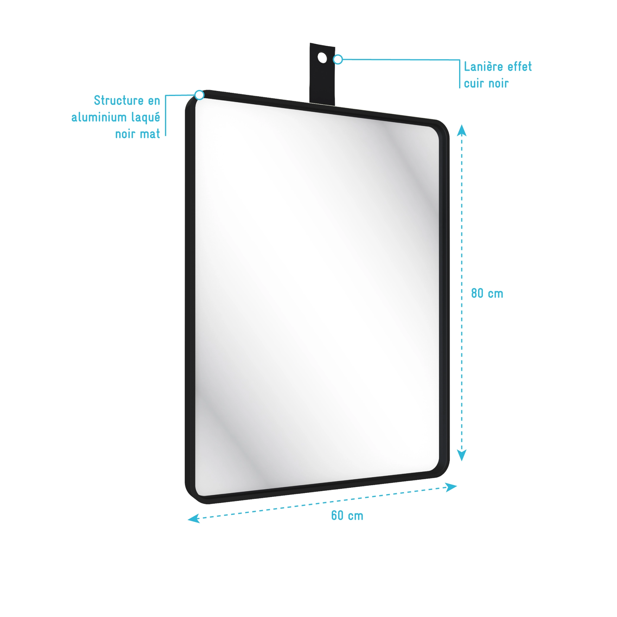 Miroir salle de bain 60x80cm suspendu noir mat – avec lanière effet cuir noir – NORDIK REKTANGEL