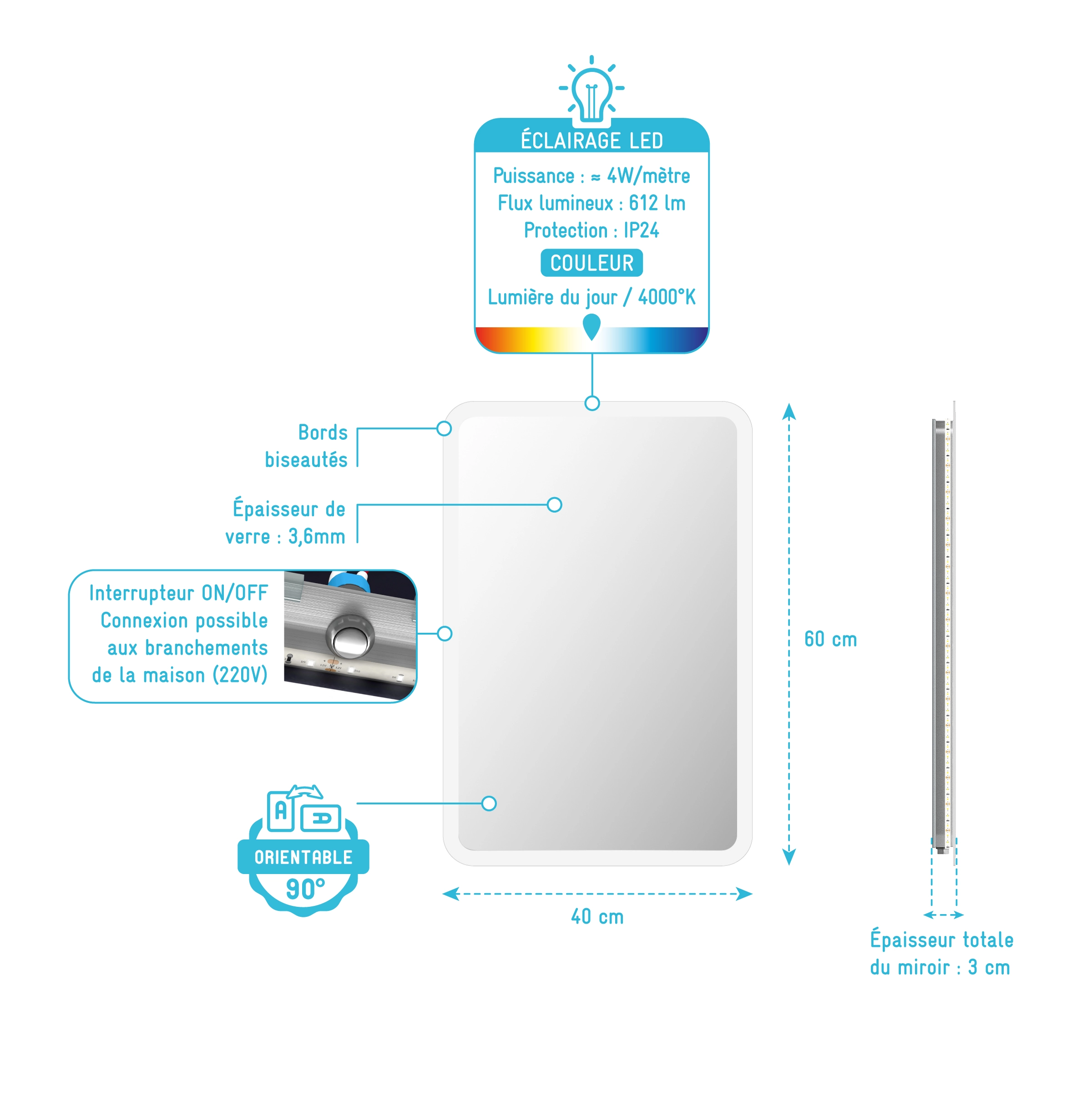 La diffusion harmonieuse de la lumière inspire le bien-être : vous prendrez plaisir à vous préparer chaque jour.