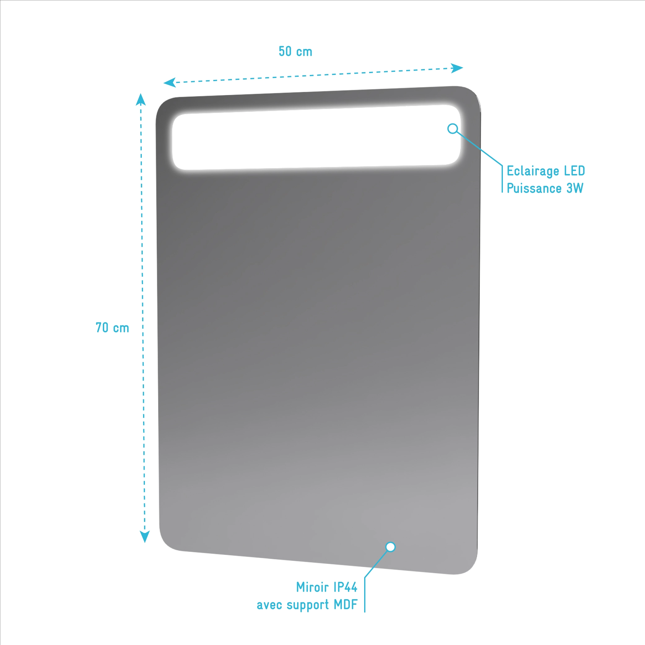 Miroir salle de bain avec bandeau Led – 50x70x5 cm – CLOUD