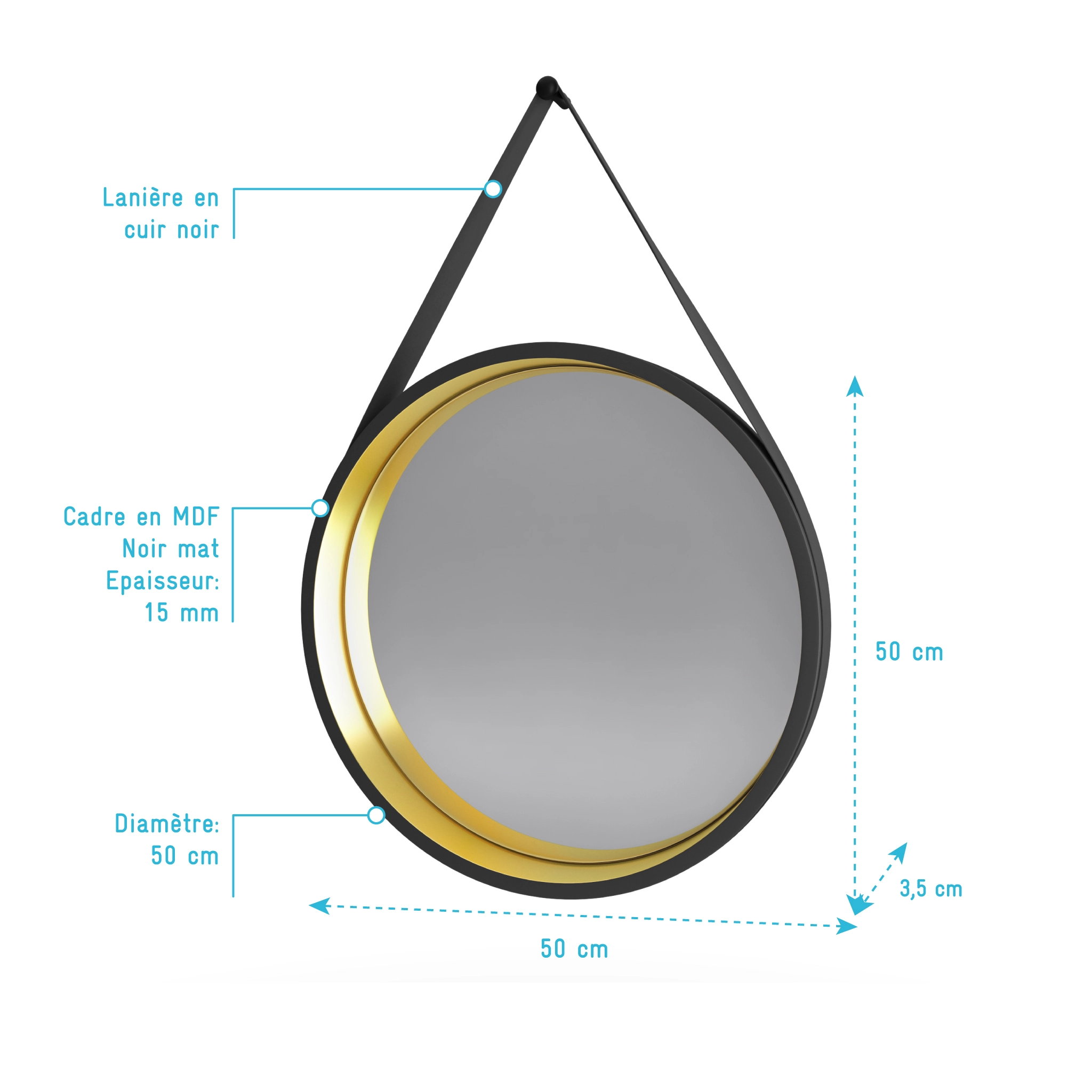 2 avis pour Miroir salle de bain rond type barbier – diamètre 50cm – BARBER GOLD