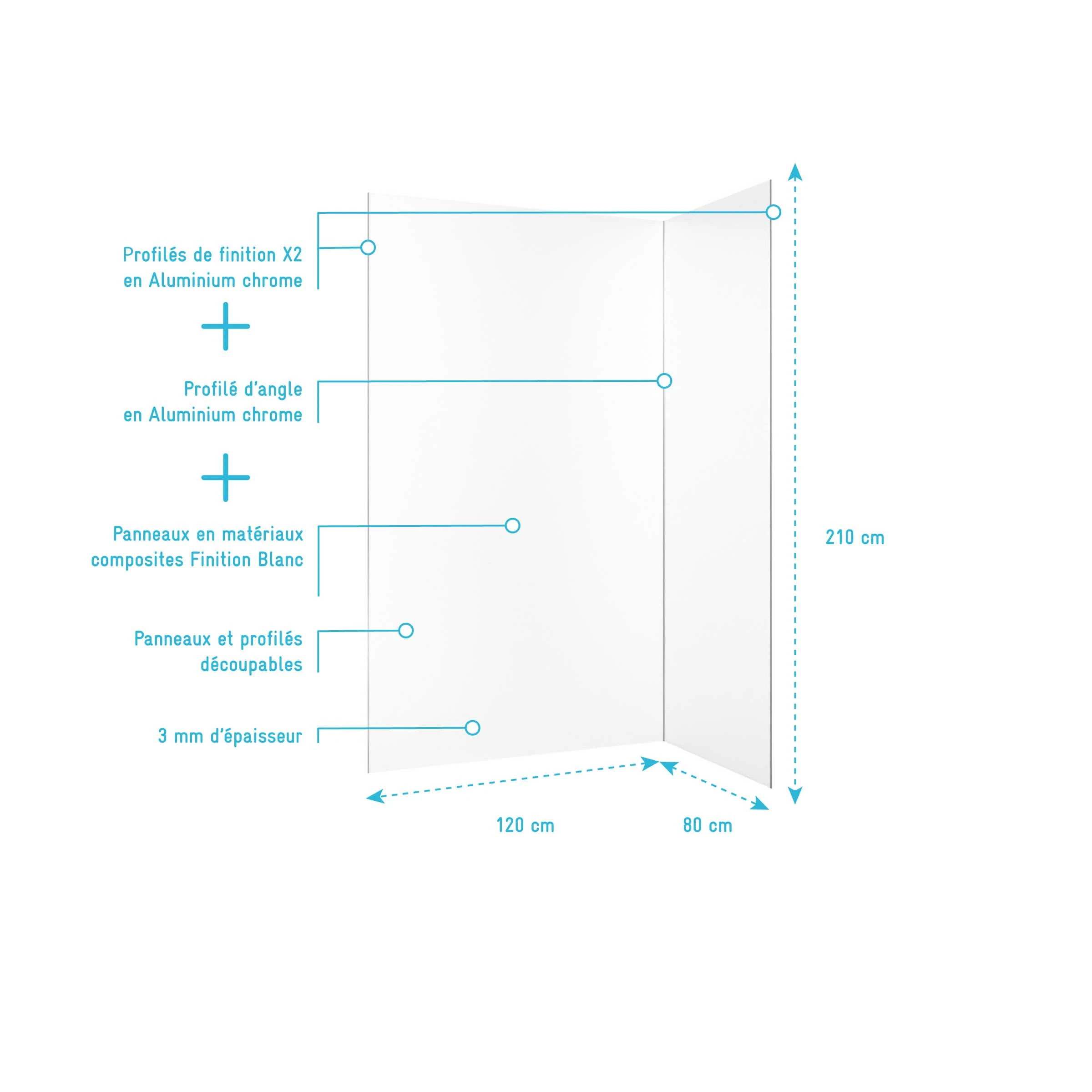 1 avis pour Pack 2 Panneaux Muraux en Aluminium Blanc 80+120×210 cm + Profilés Finition et Angle Chrome