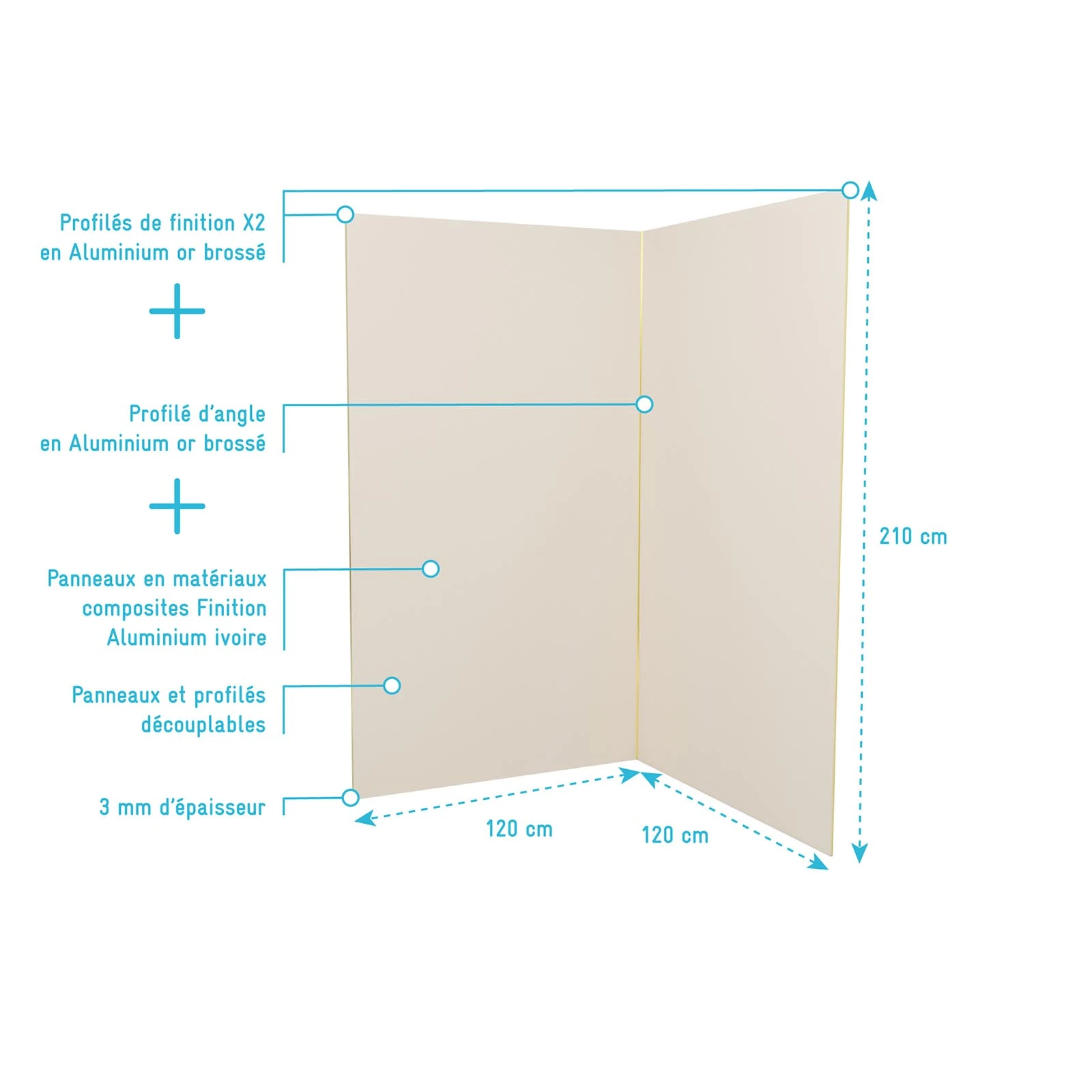 Pack 2 Panneaux Muraux en Aluminium Ivoire 120×210 cm + Profilés Finition et Angle Or Doré Brossé
