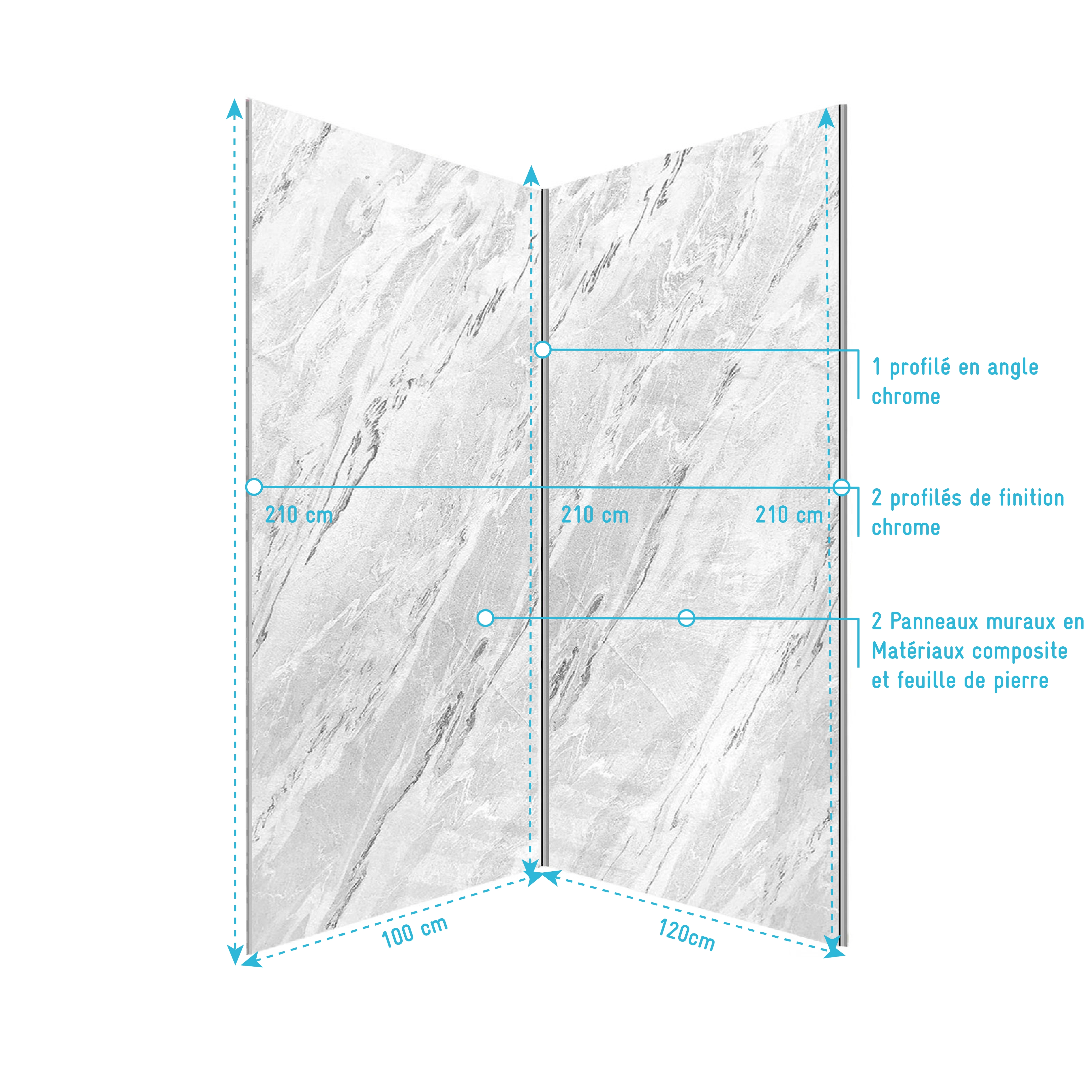 Pack 2 Panneaux Muraux Pierre Artic Storm 100+120×210 + Profilés Chrome – STONE’IT