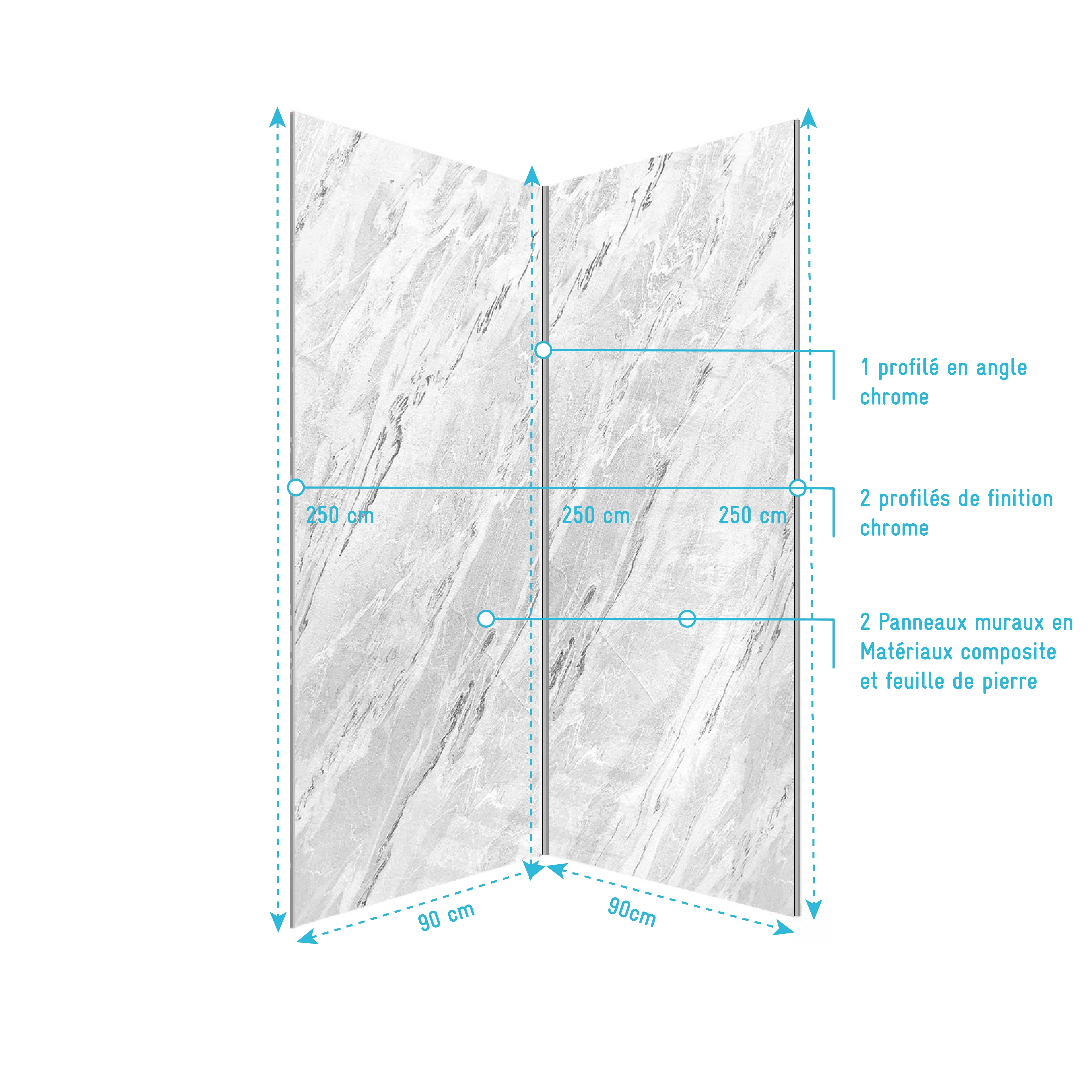 Pack 2 Panneaux Muraux Pierre Artic Storm 90x250cm + Profilés Chrome - STONE'IT