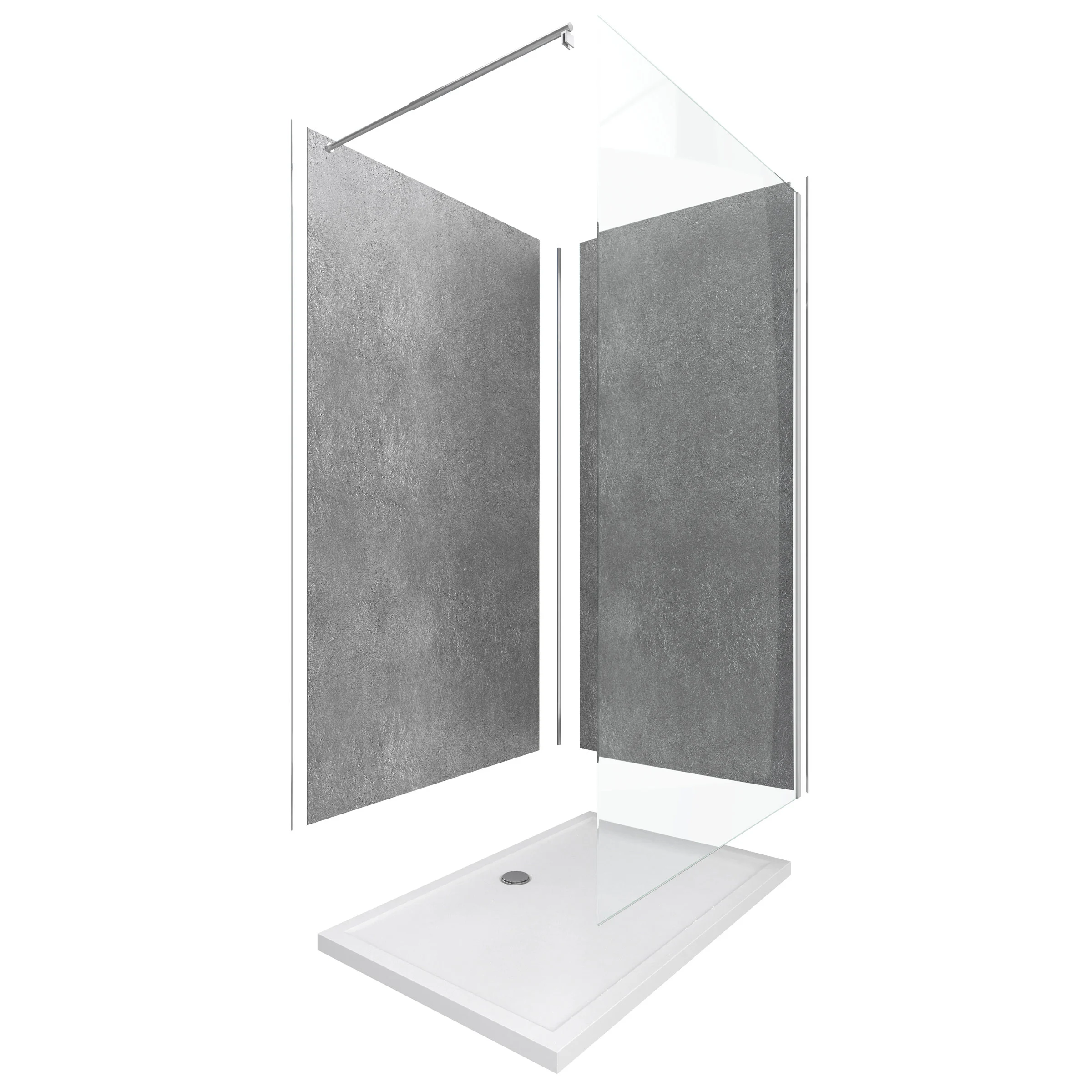 Pack 2 panneaux muraux STONE’IT SILVER GREY 90 + paroi de douche + receveur + barre de fixation