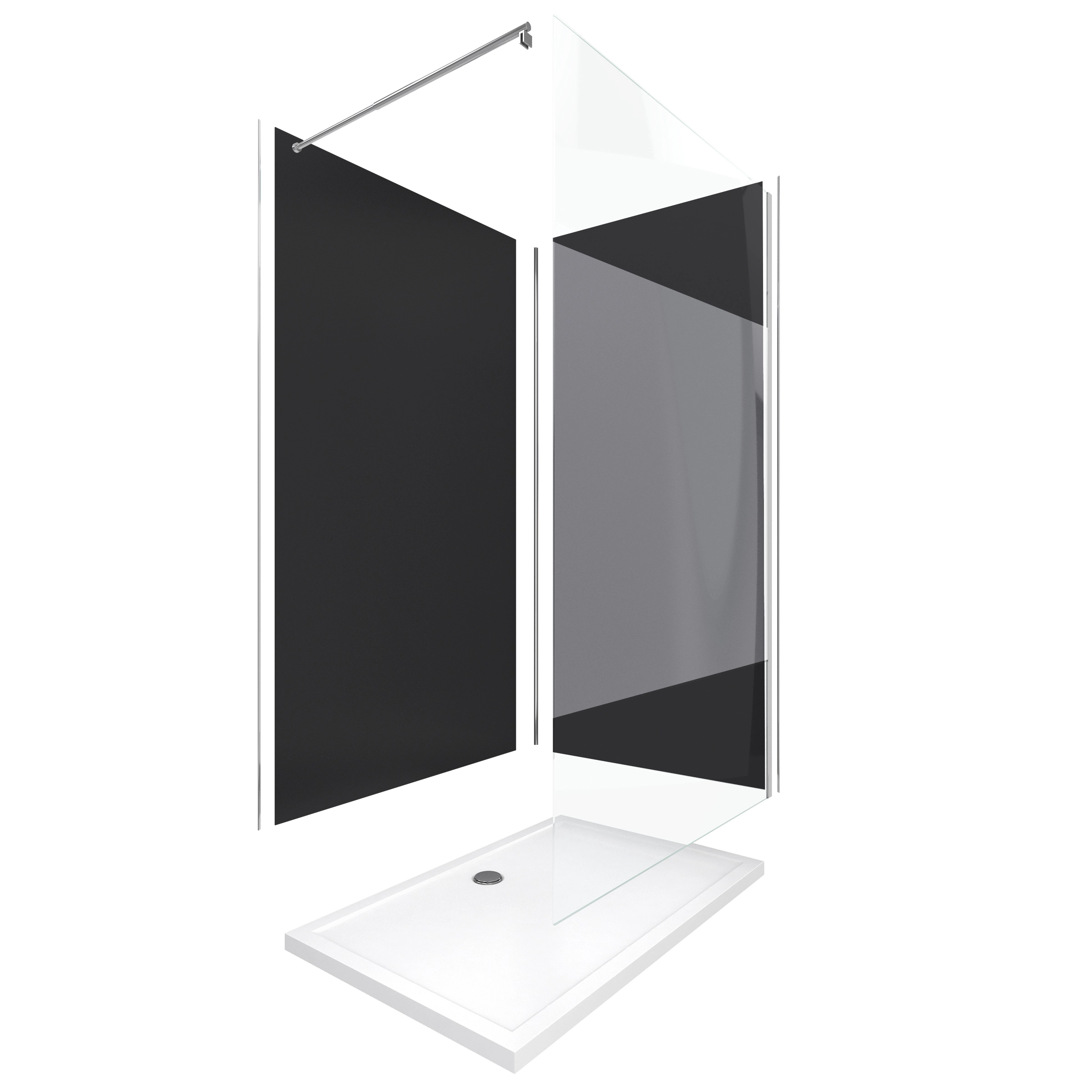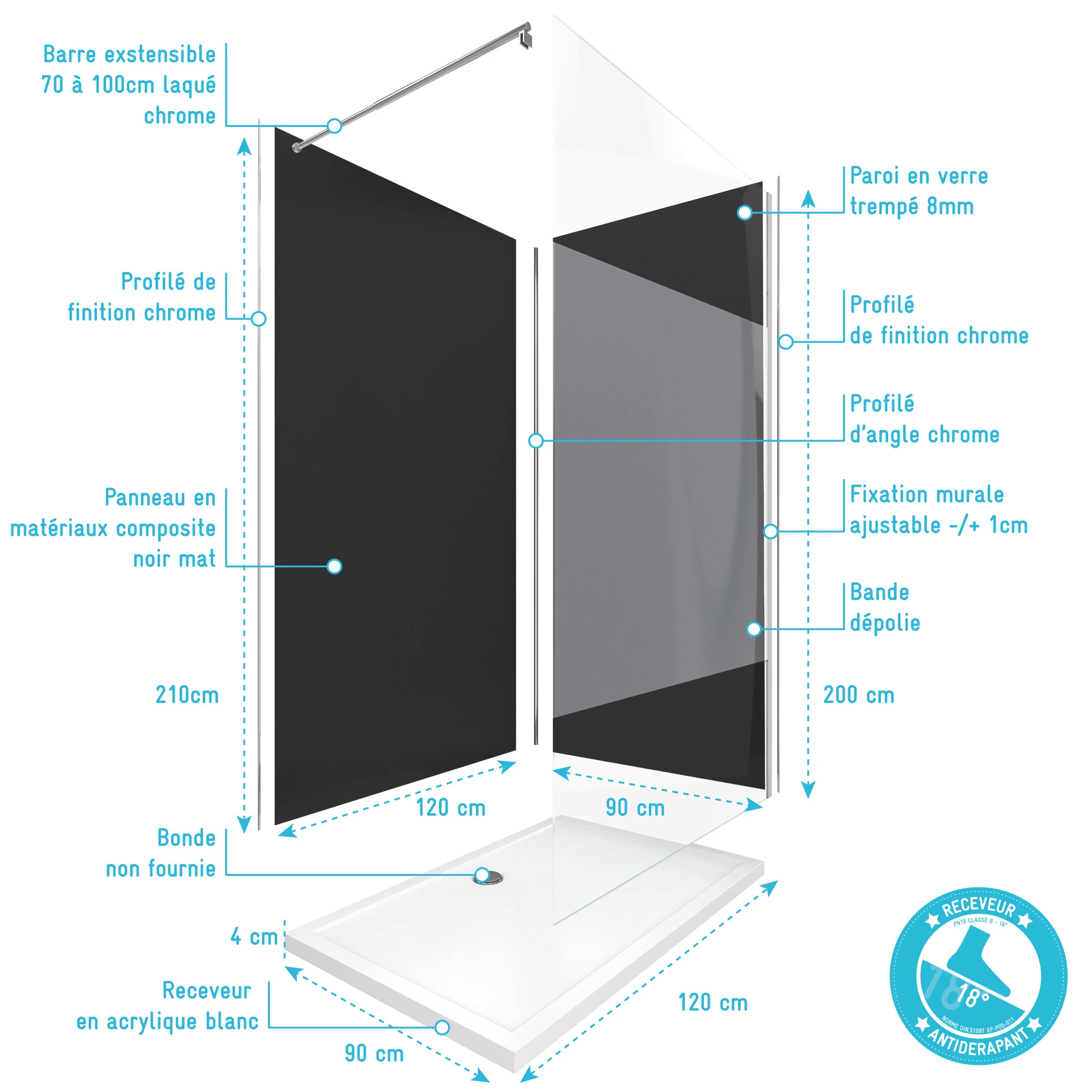 Pack Douche a l’Italienne 90×120 – Kit Panneaux Muraux Noir/Chrome + Receveur + Paroi Depolie 8 mm