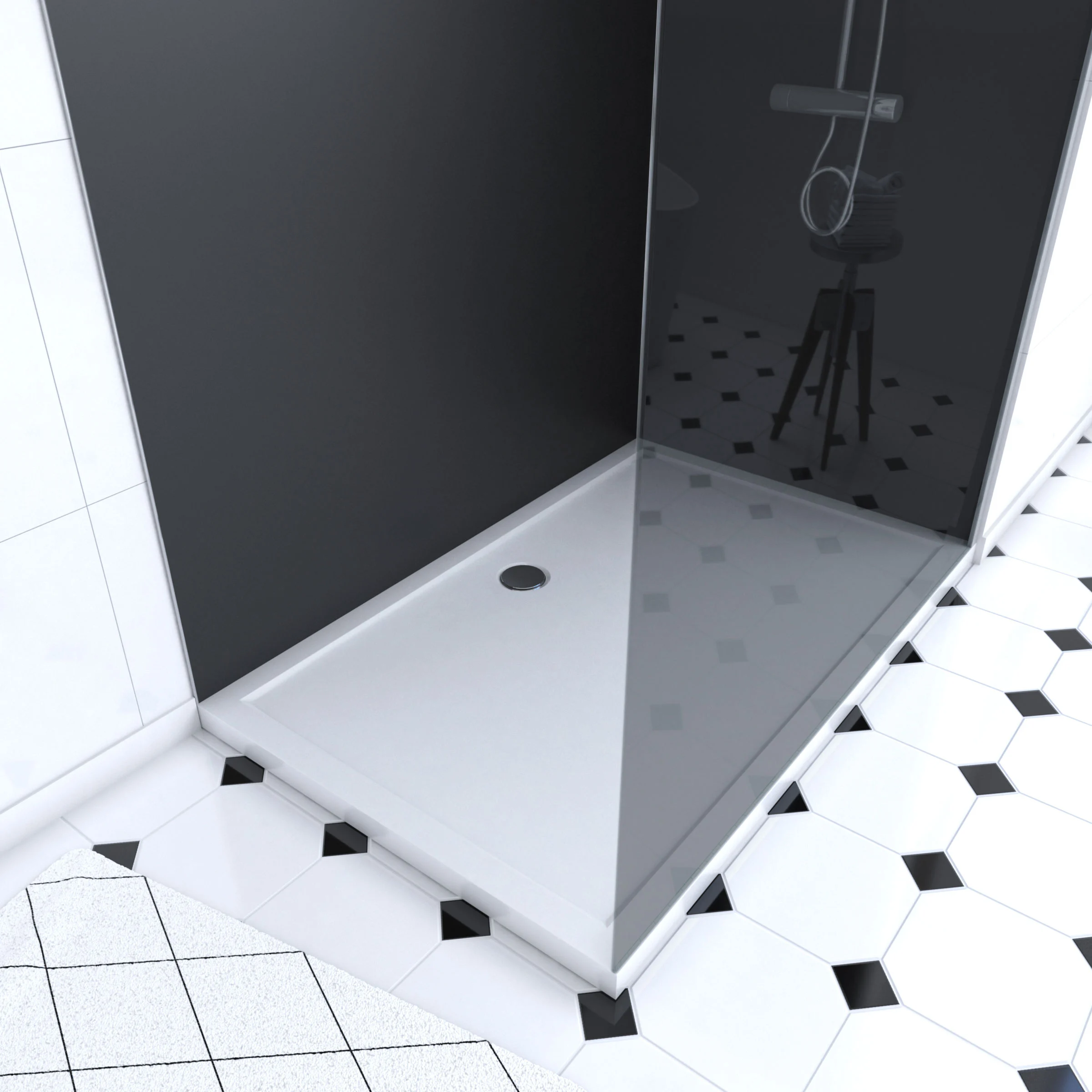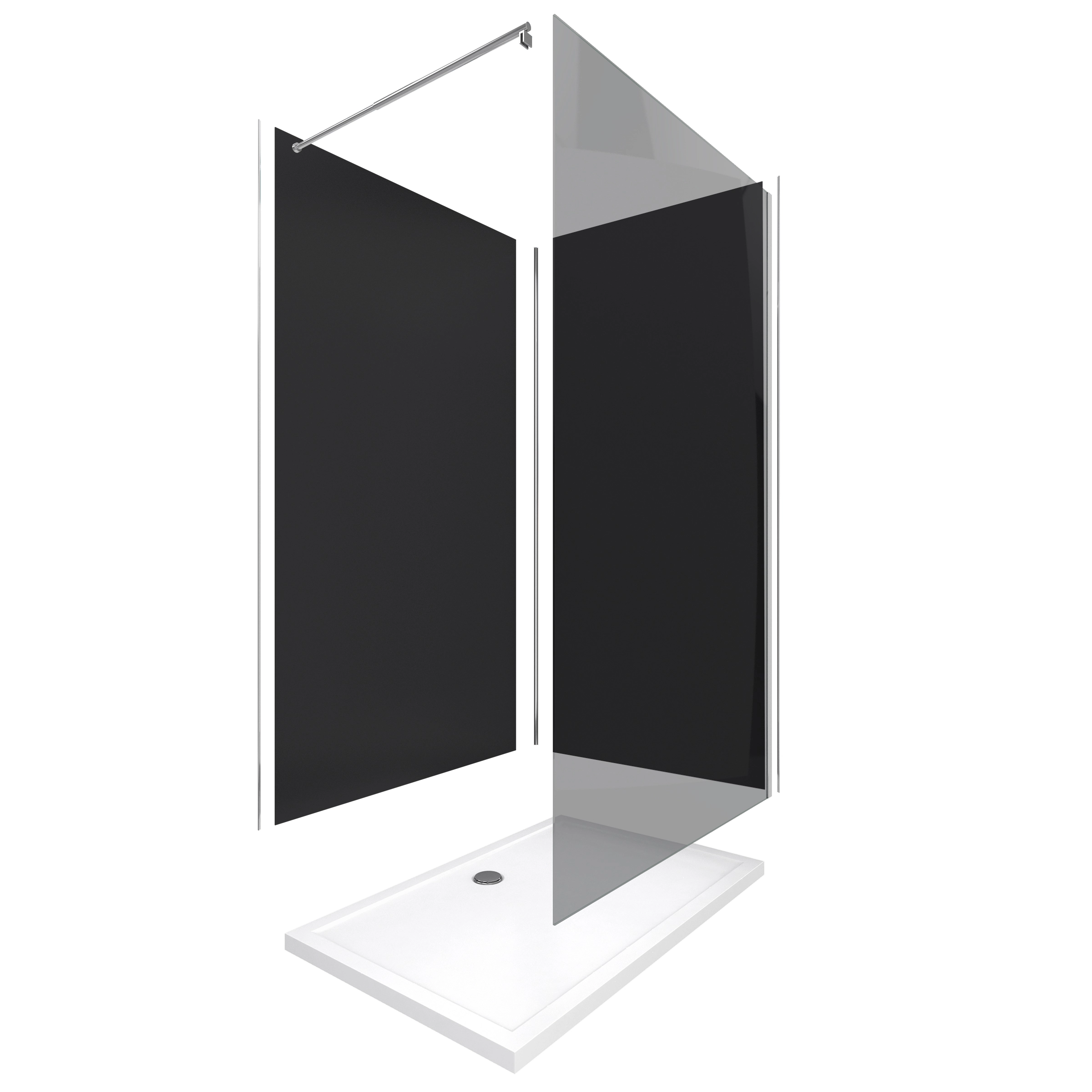 Pack Douche a l’Italienne 90×120 – Kit Panneaux Muraux Noir/Chrome + Receveur + Paroi Fumee 8 mm