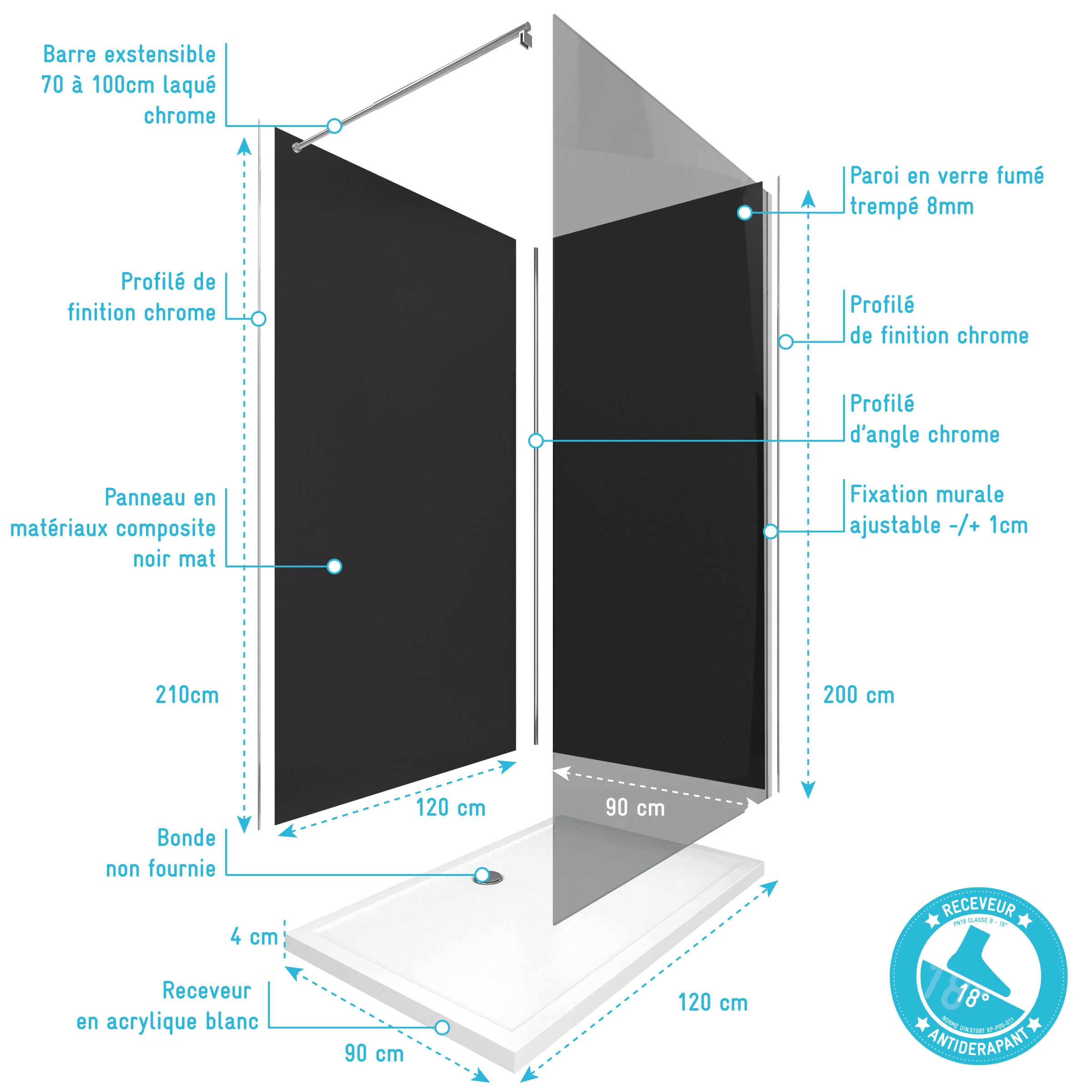 - Épaisseur receveur : 4 cm