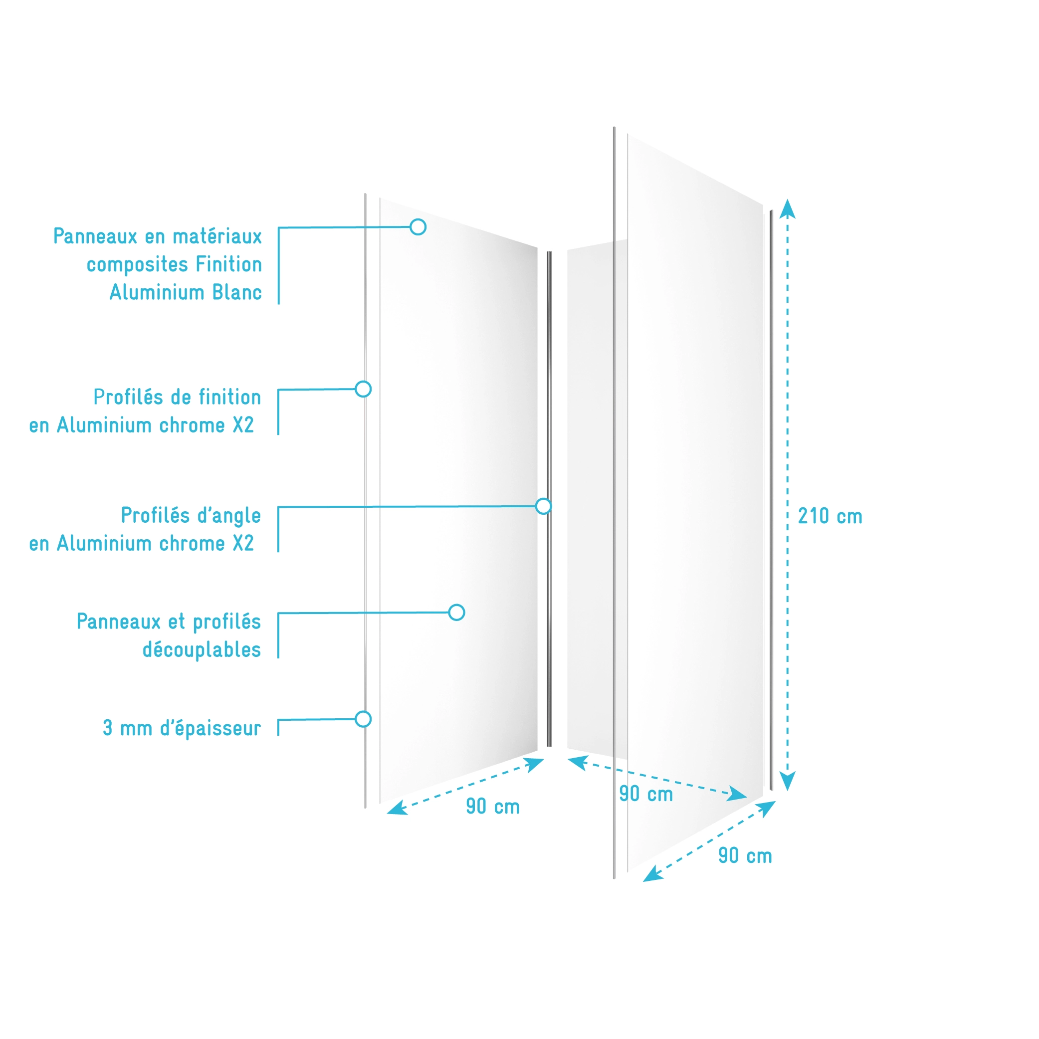 0 avis Pack 2 Panneaux muraux Silver 90x210cm + Profiles finition et angle chrome - WALL'IT