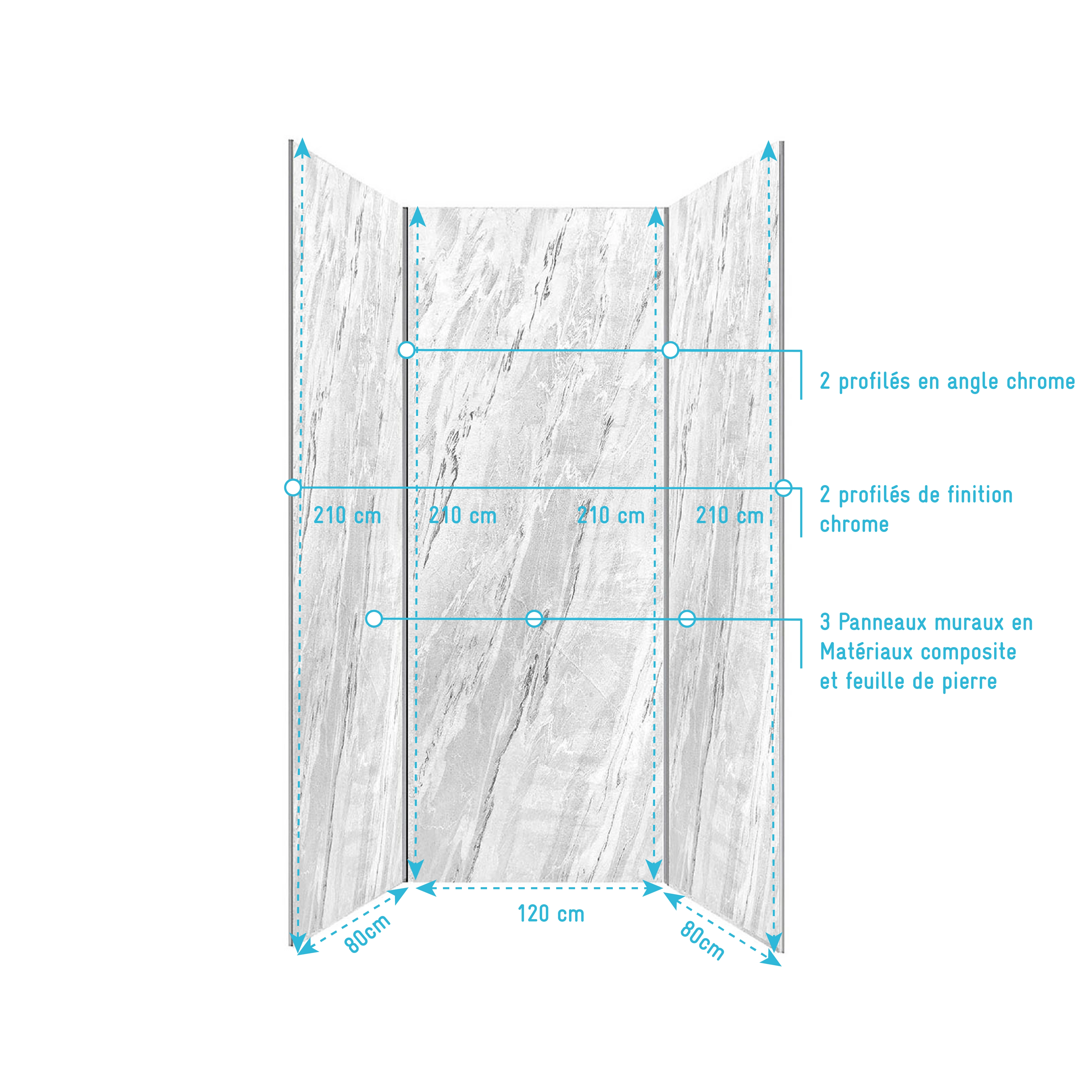 Pack 3 Panneaux Muraux Pierre Artic Storm 80(x2)+120x210cm + Profilés Chrome – STONE’IT