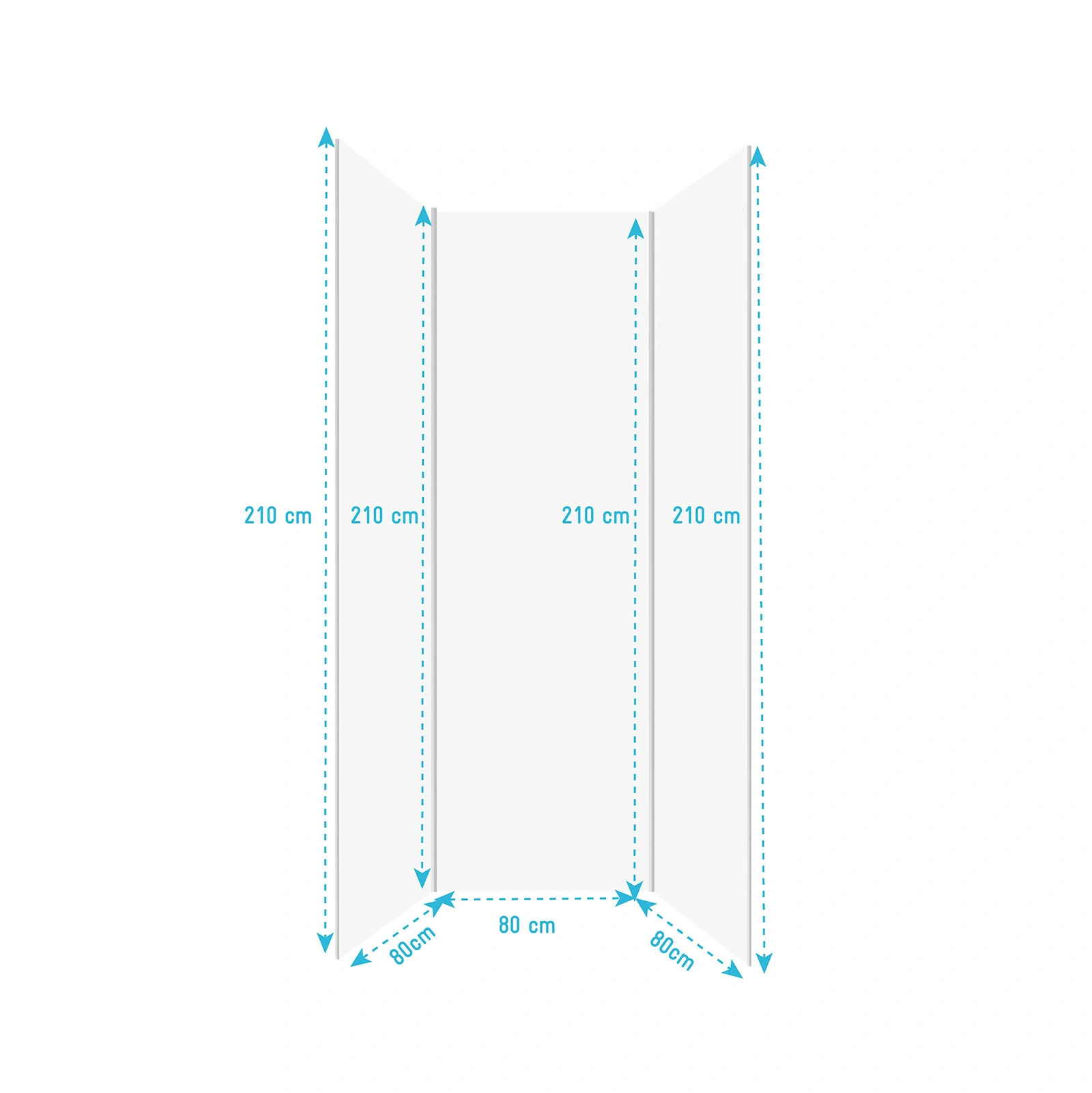 - Dimensions des panneaux : 80×210 cm (x3)