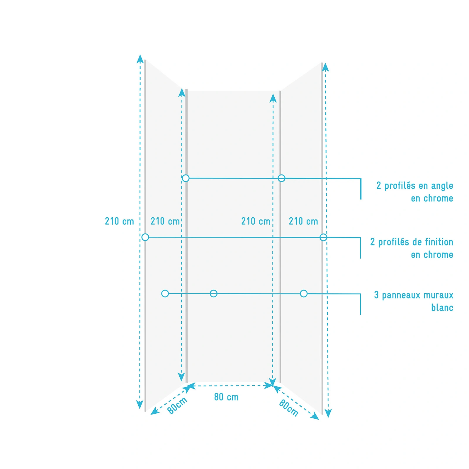 Pack de 3 Panneaux Muraux Aluminium Blanc 80×210 cm avec Profilés Chrome – WALL’IT