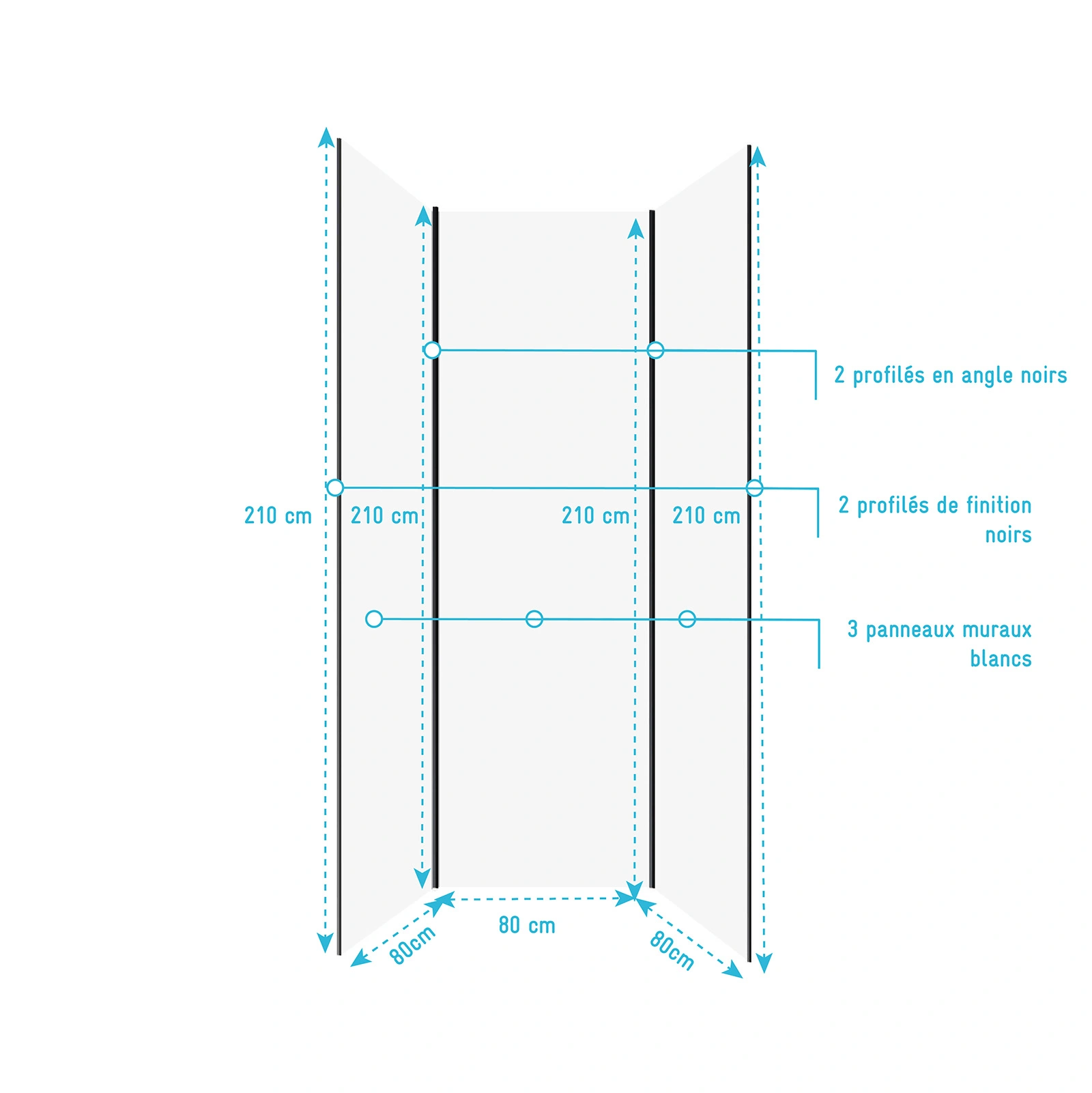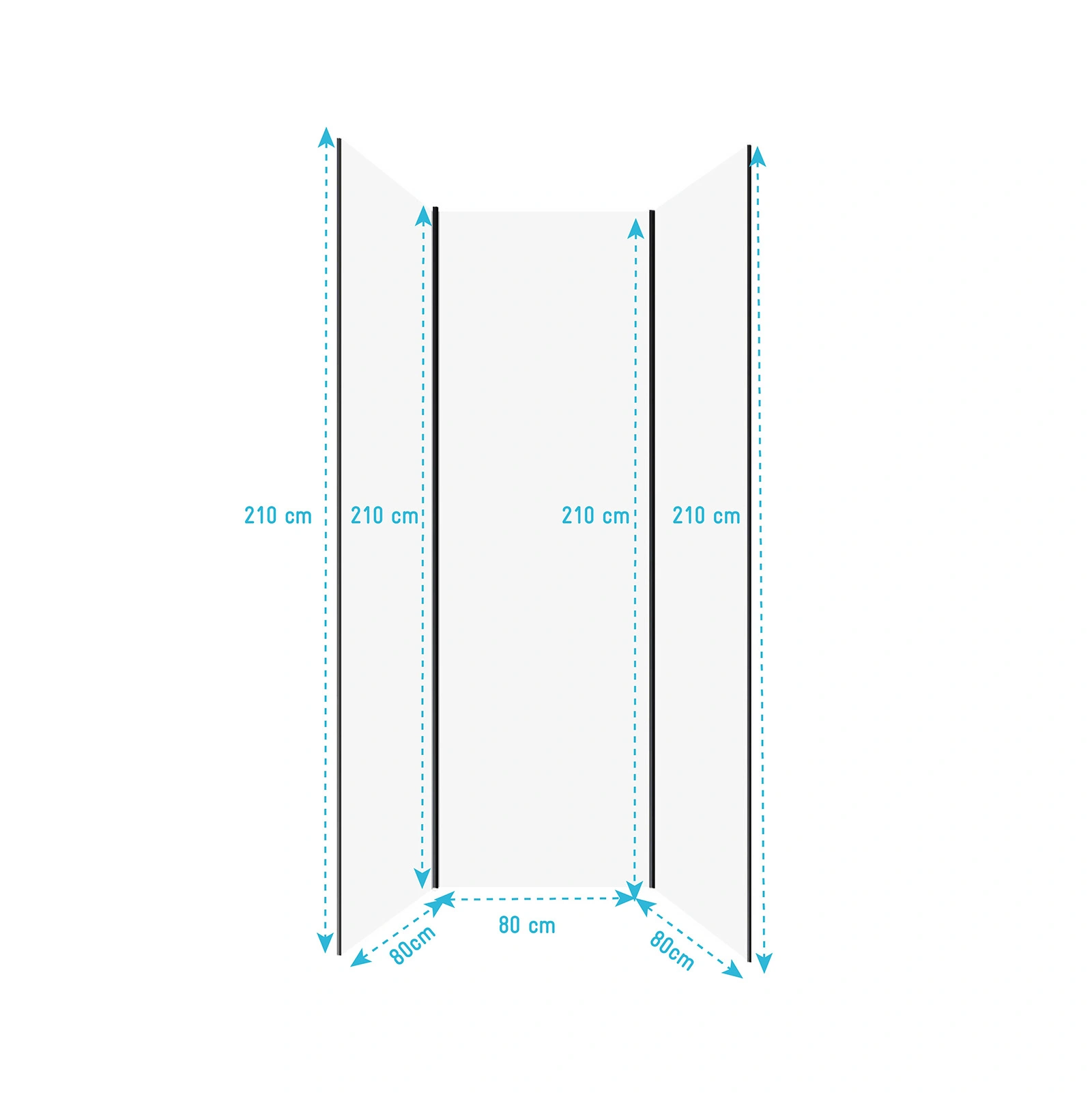- Dimensions des panneaux : 80×210 cm (x3)